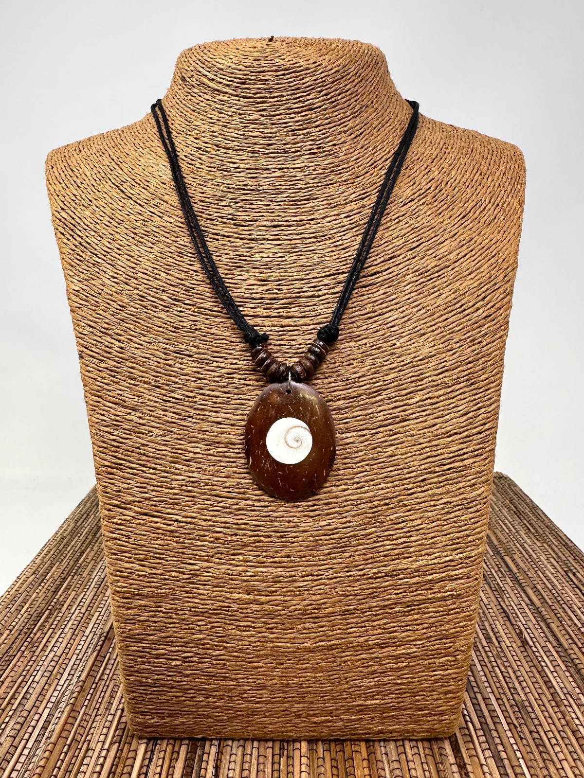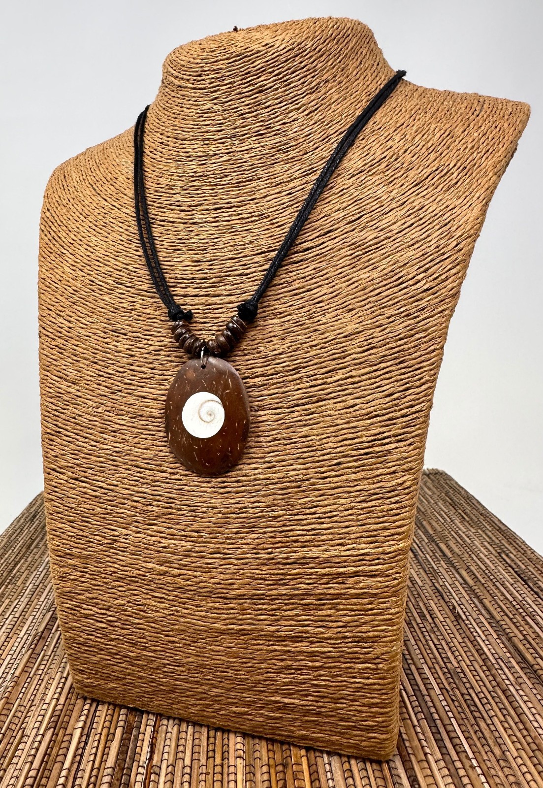 Handmade Seashell Necklace Coconut Shell Pendant Adjustable Cord Unisex Ocean