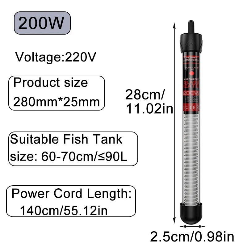 300W Aquarium Fish Tank Heater Rod Heating Adjustable Thermostat