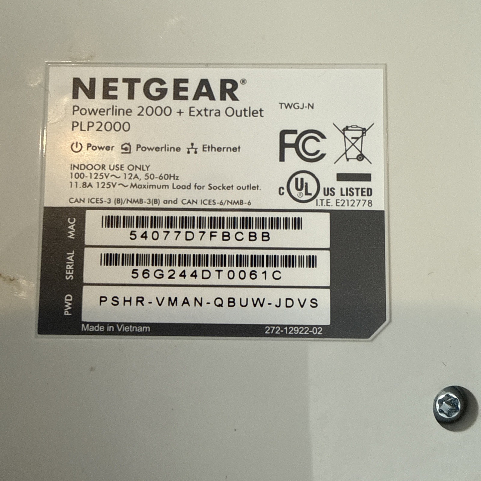 Netgear Powerline 2000 PLP2000 Extra Outlet, Wall Plug Network Adapter