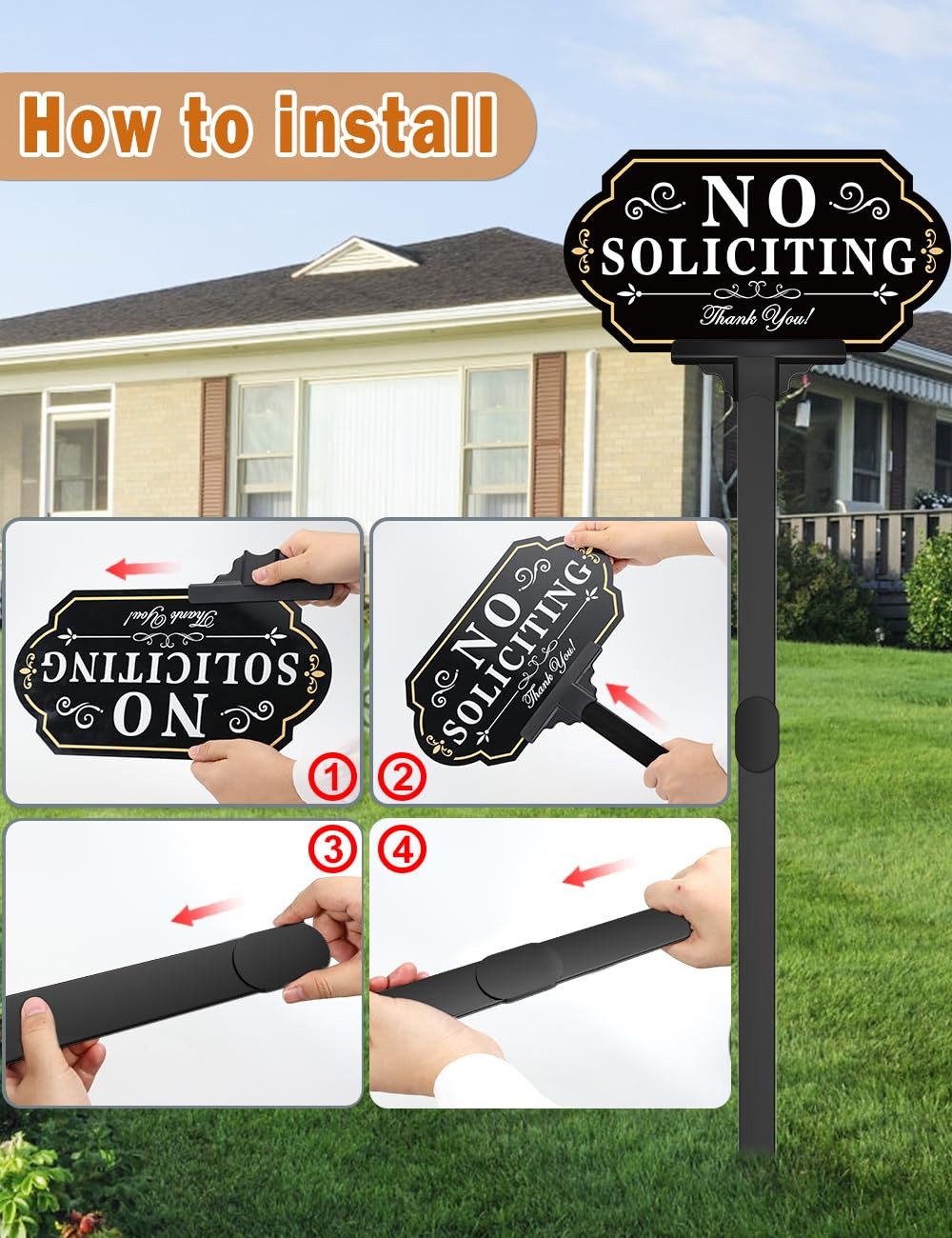 Multiwins No Soliciting Sign for House with Stake - Small Signage, Gold