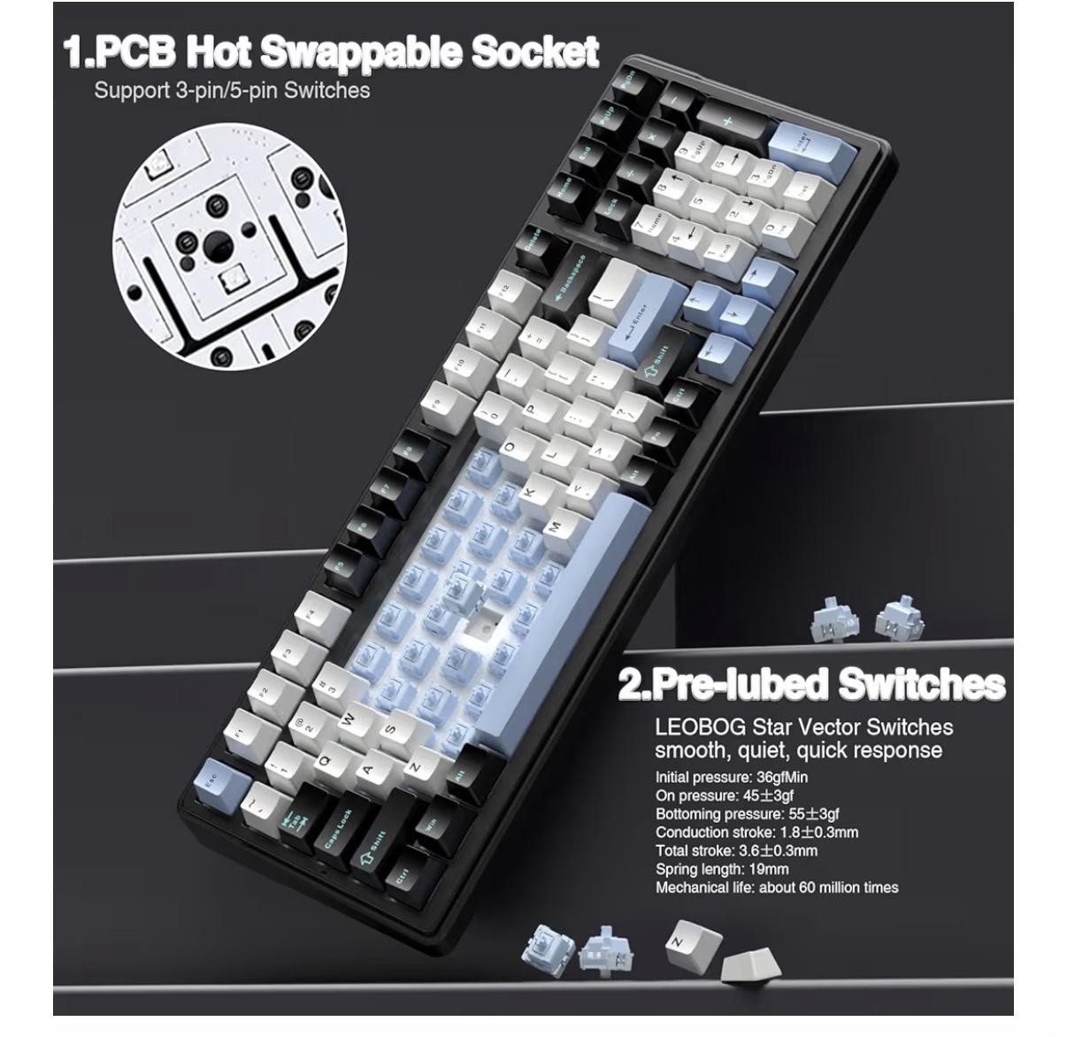 AULA F99 Wireless Mechanical Keyboard 99 Key RGB BT5 2.4G USB-C PBT White Blue