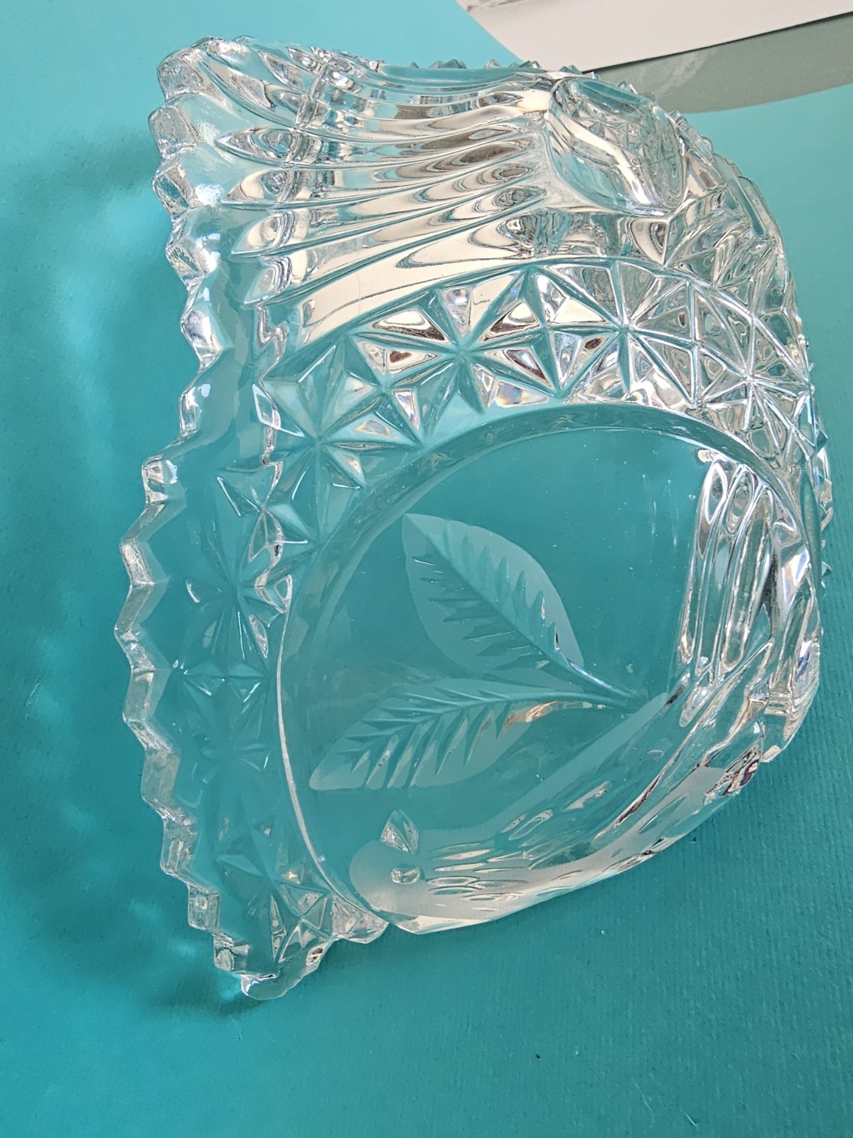 как выглядит Broken Sparkly Crystal Art Glass With A bird and Leaves. фото