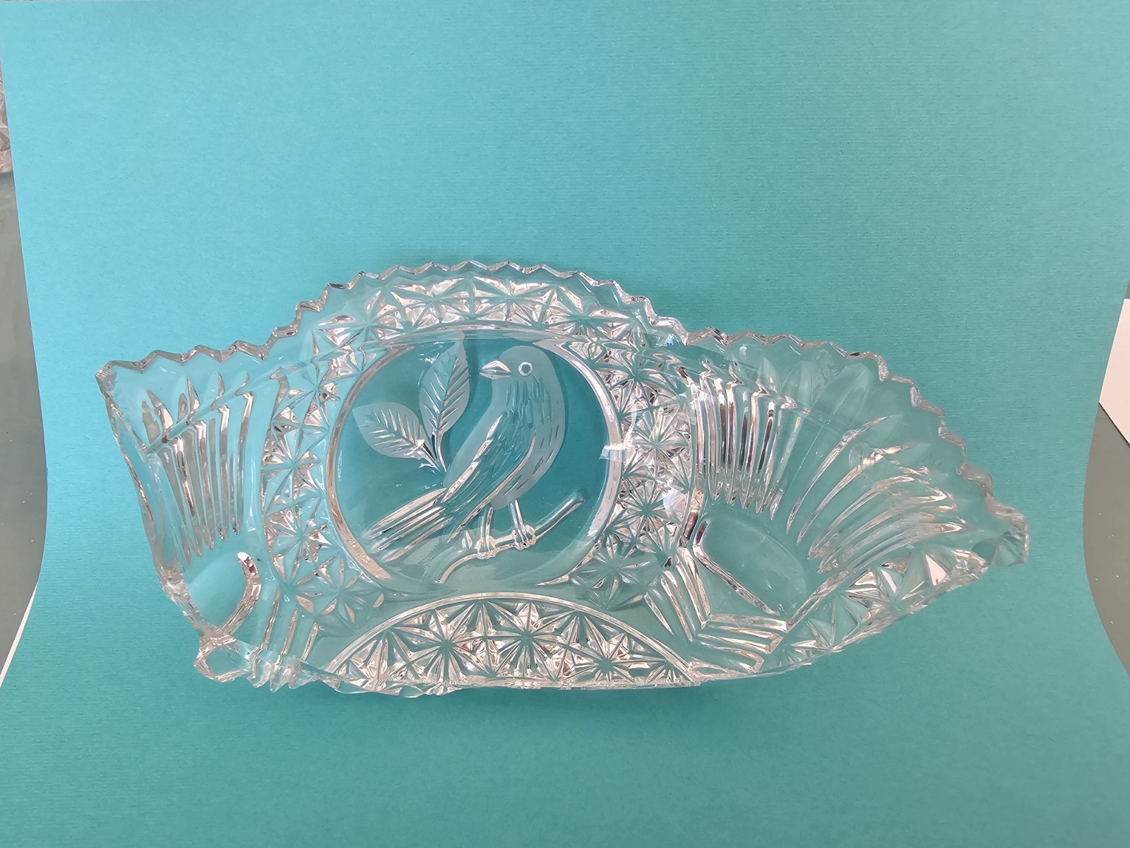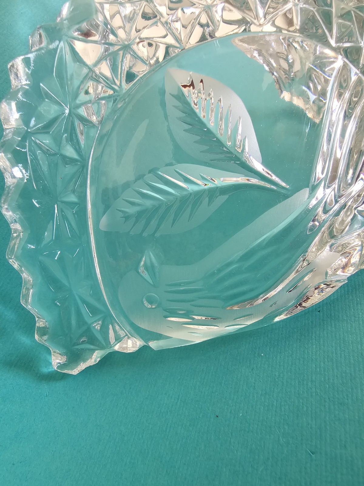 Broken Sparkly Crystal Art Glass With A bird and Leaves.