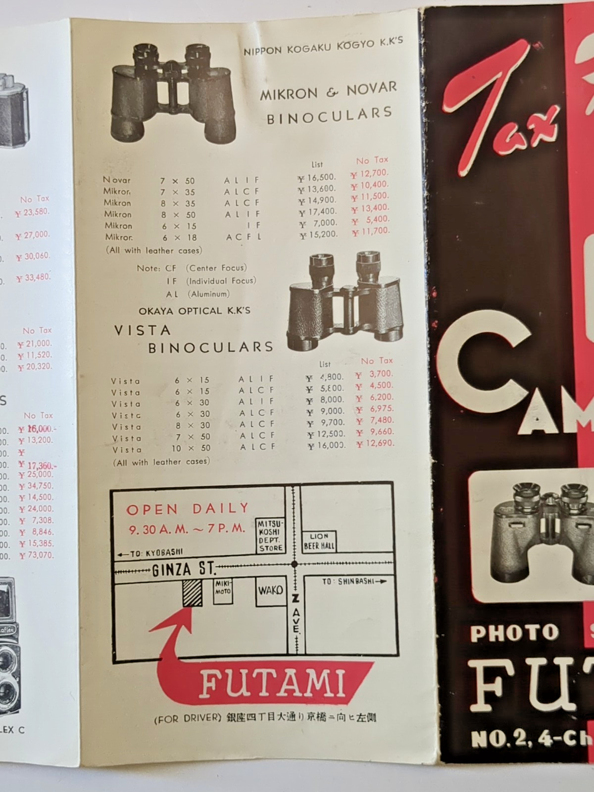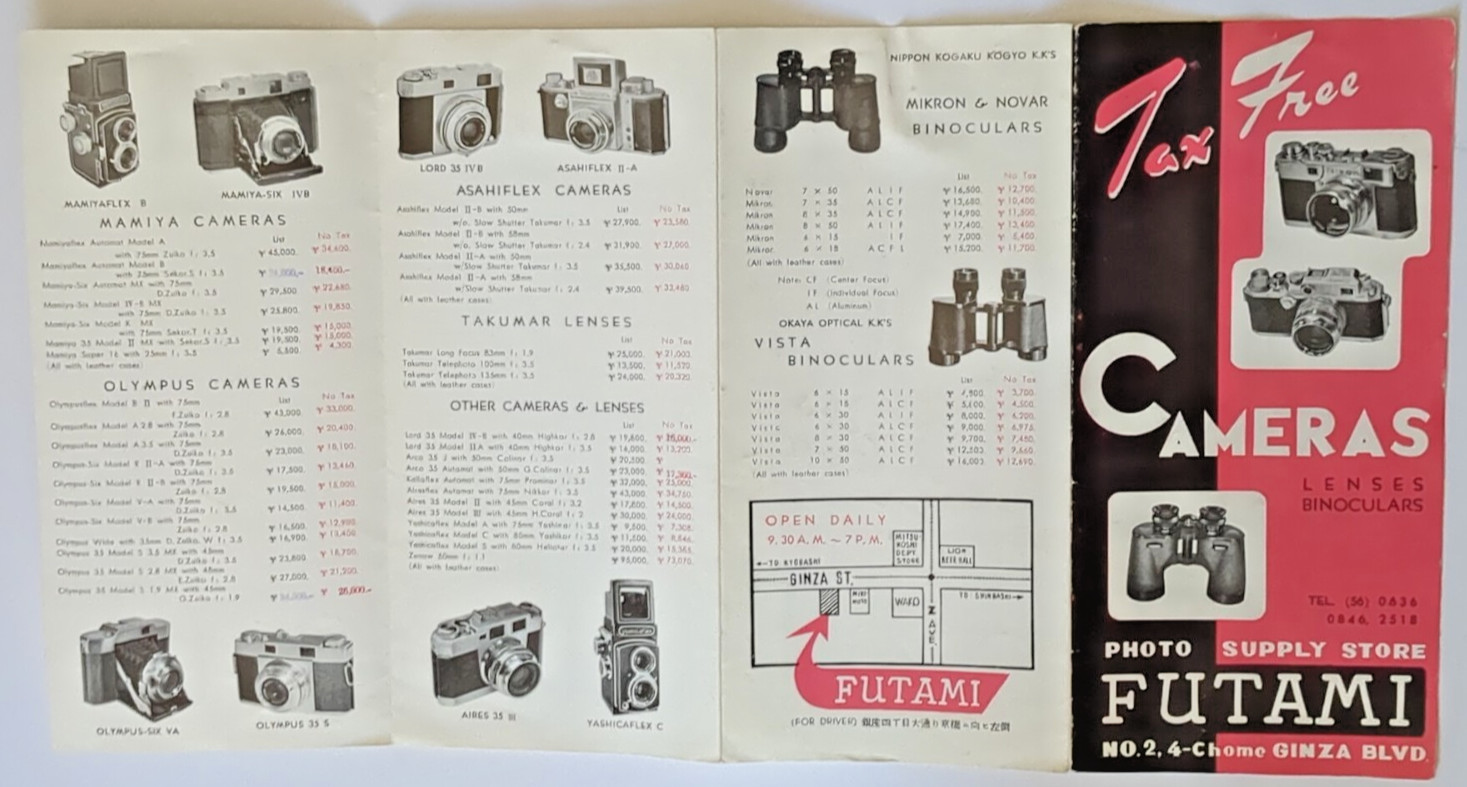 RARE 1950s Futami Japan / Korea War era. Camera Supply Store Sales Brochure,