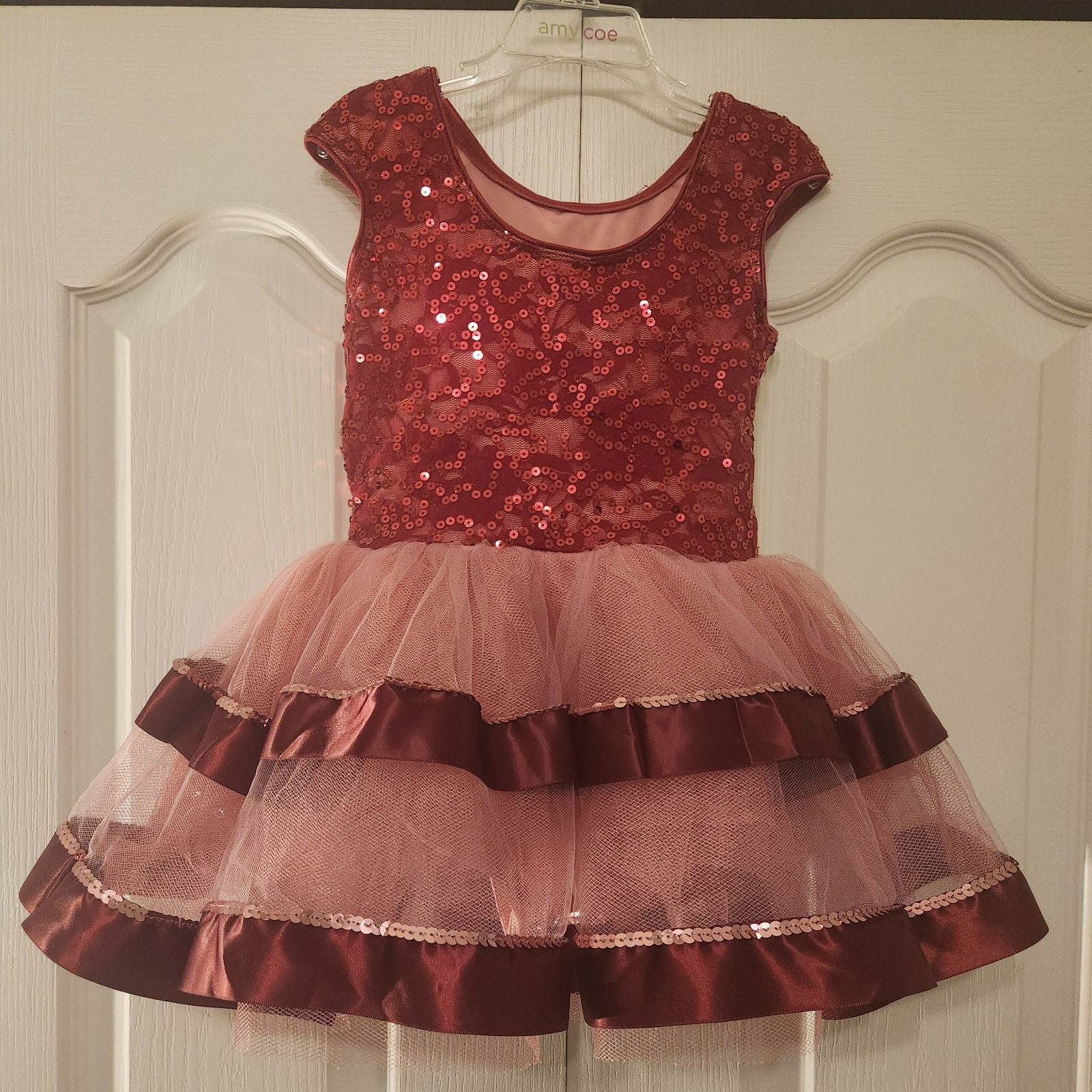как выглядит Revolution Pink Burgundy Red Sequin Tulle Tutu Dance Outfit Sz MC C ostume фото