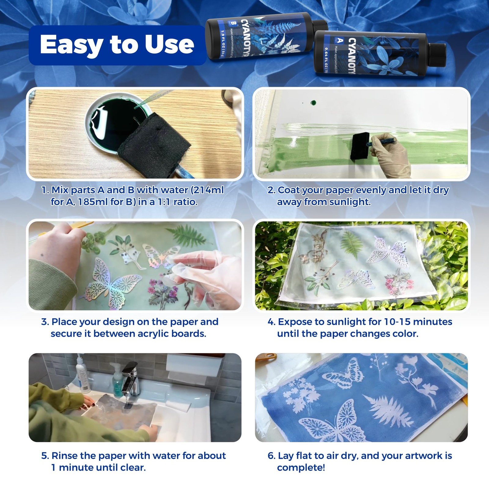 • 16oz Art Cyanotype Chemicals Kit for Photographic Blueprints, Cyanotype Sensi...