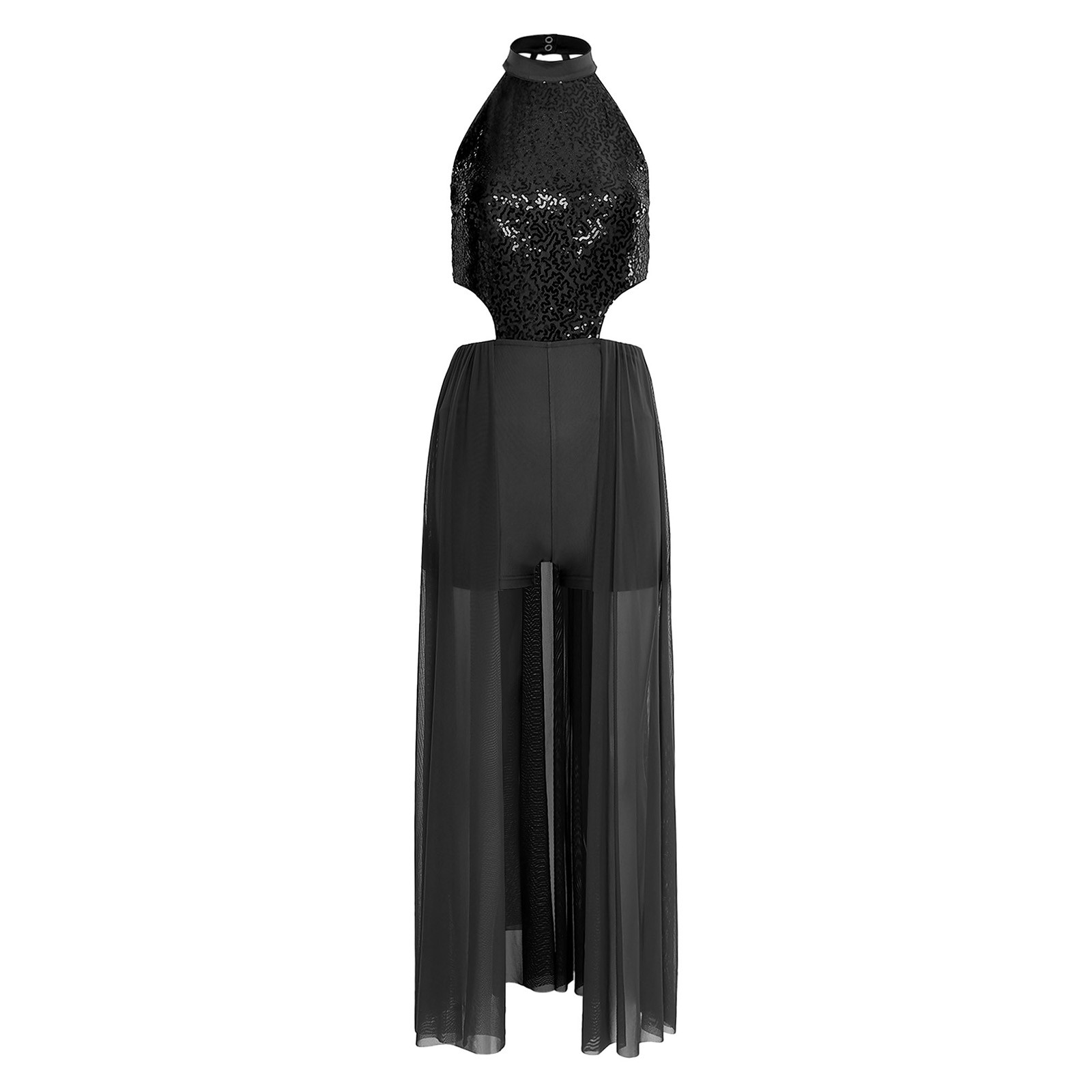 Womens Dance Dress Ballroom Bodysuit Performance Dancewear Modern Sequined Top