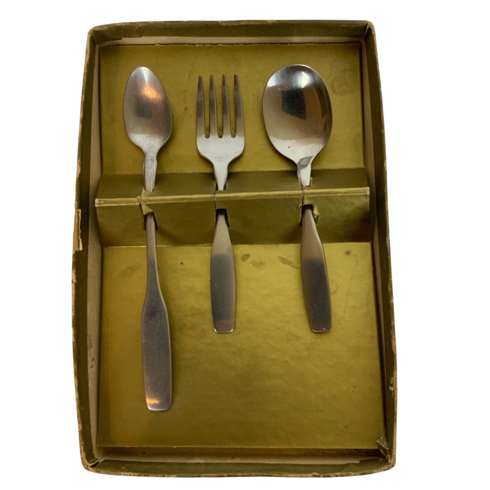 Oneida Community Stainless Paul Revere 3-Piece Baby Set Fork Spoon 1950s