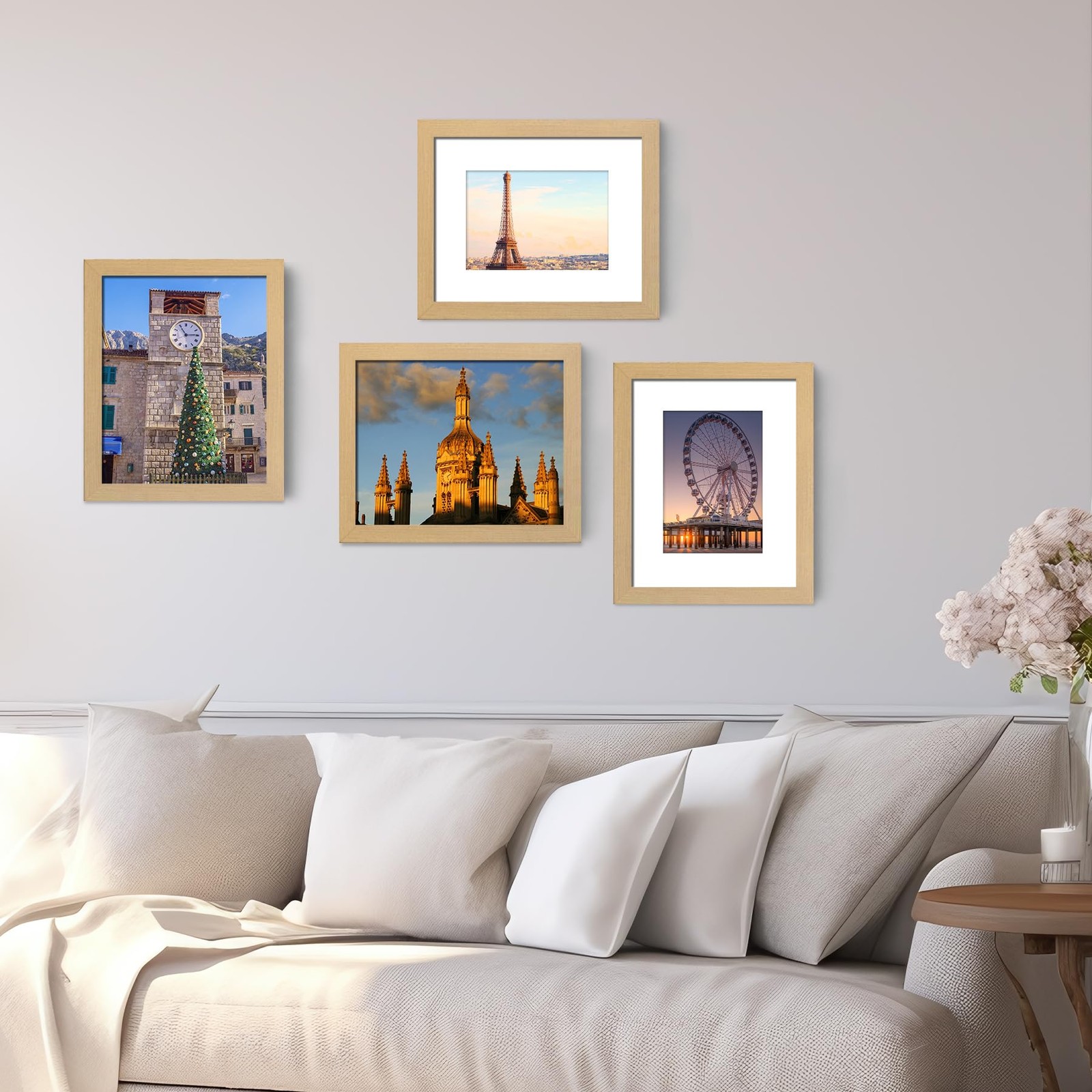 BESCRCL 8x10 Picture Frame Natural Set of 6, Display Pictures 5x7 with Mat or