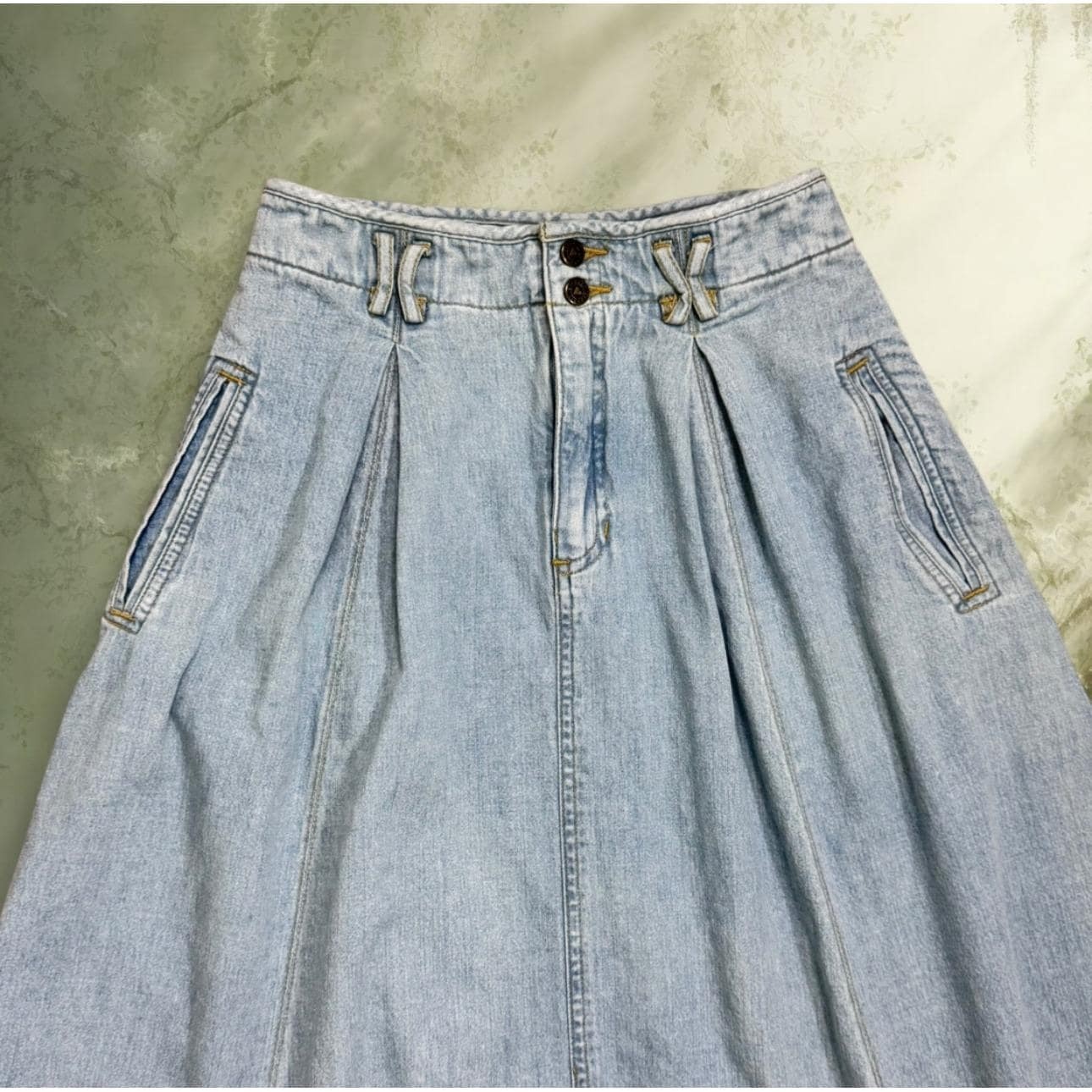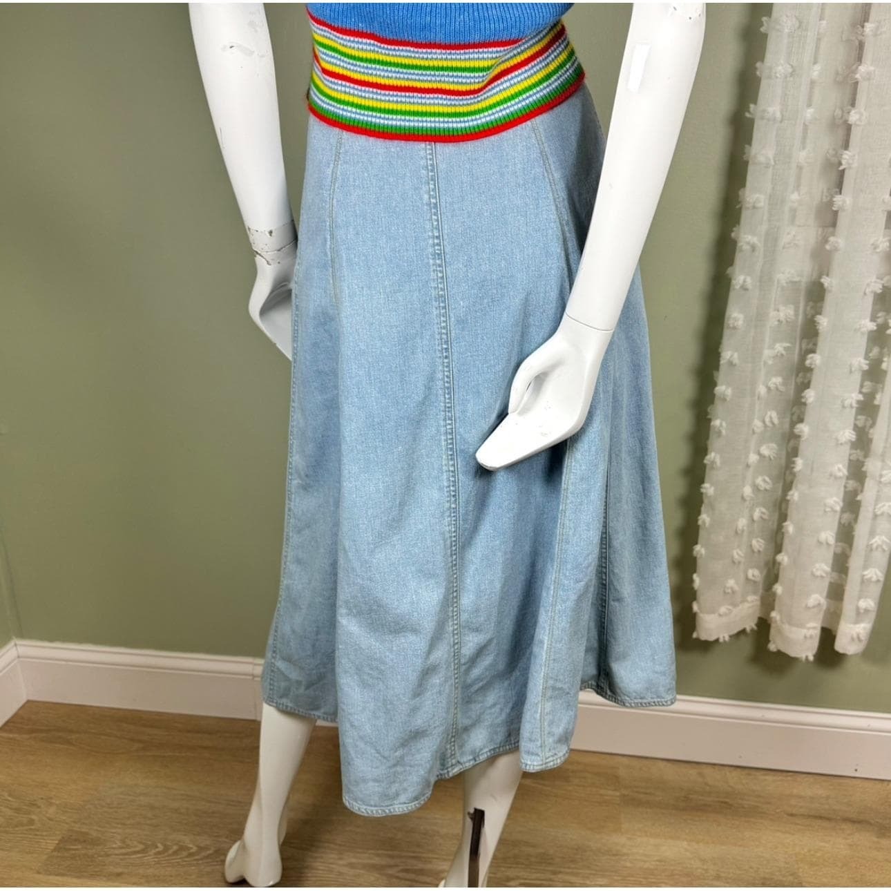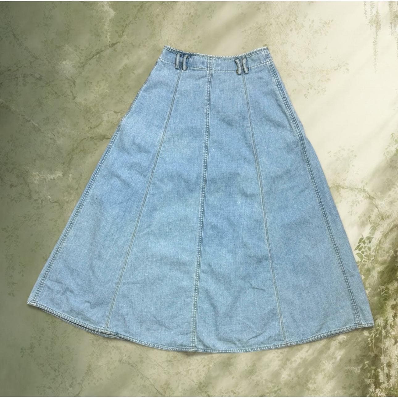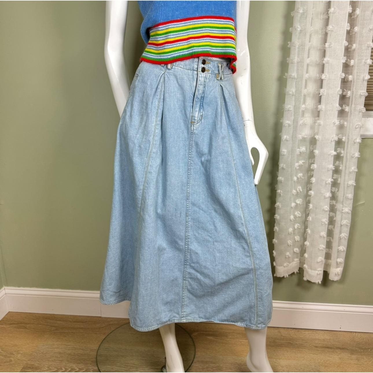 как выглядит Vintage 1990s Lizwear Light Wash Denim A-Line Midi Skirt  100 Cotton  Petite фото