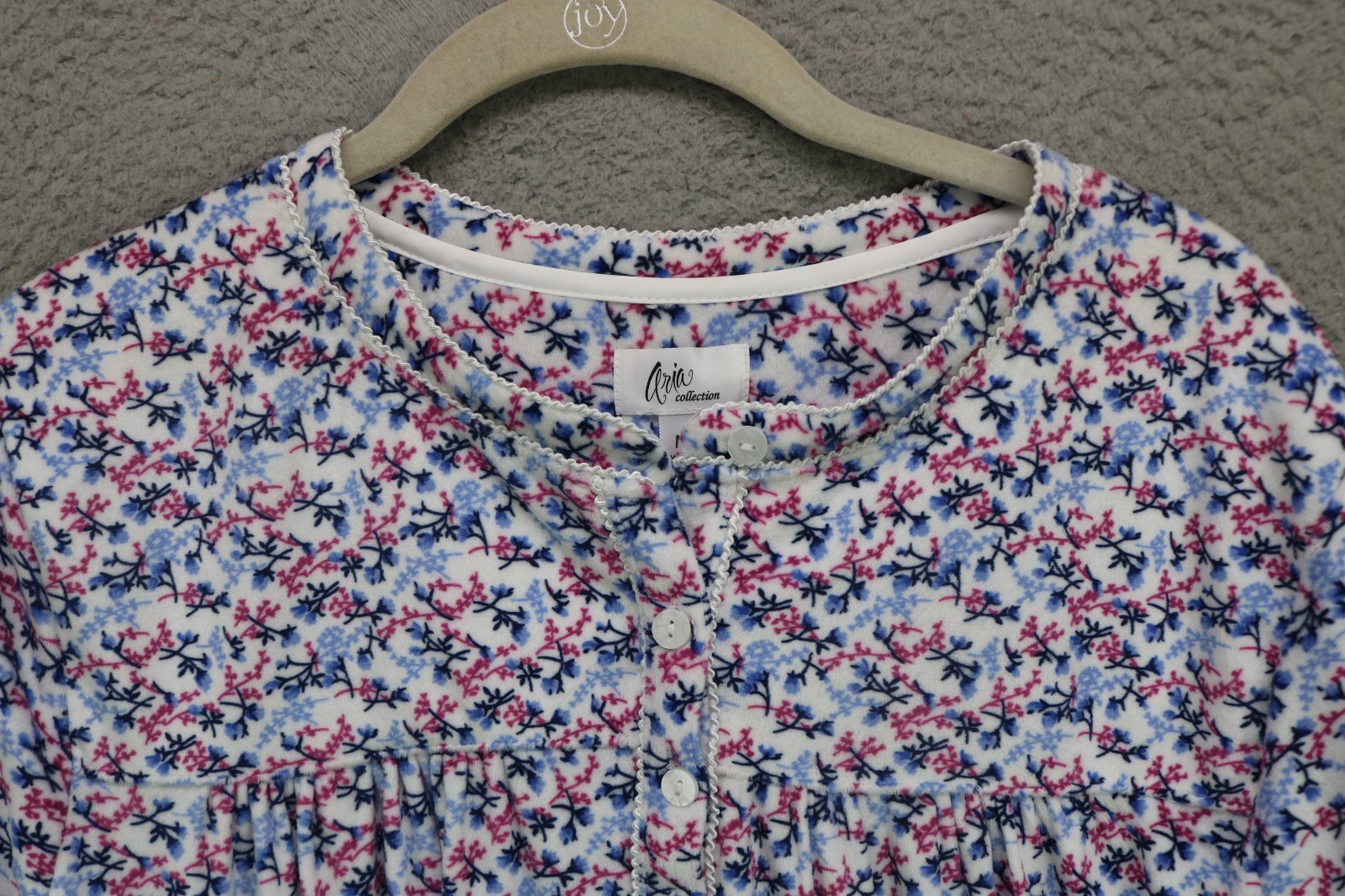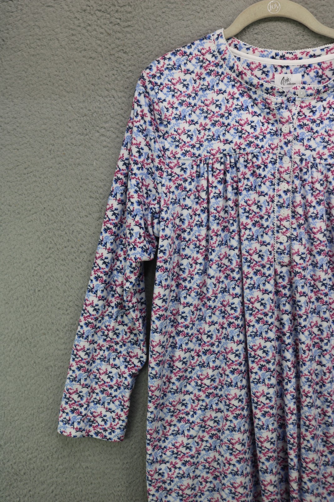 как выглядит Aria Velour Long Sleeve Midi Nightgown-Size Medium-Floral-Soft-Winter-Cozy Chic фото