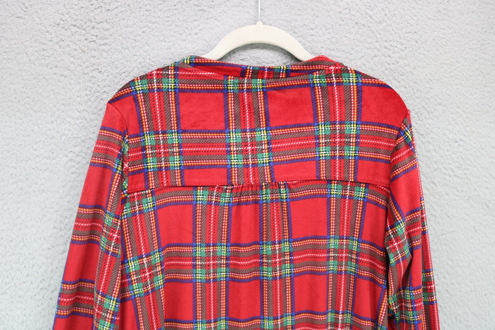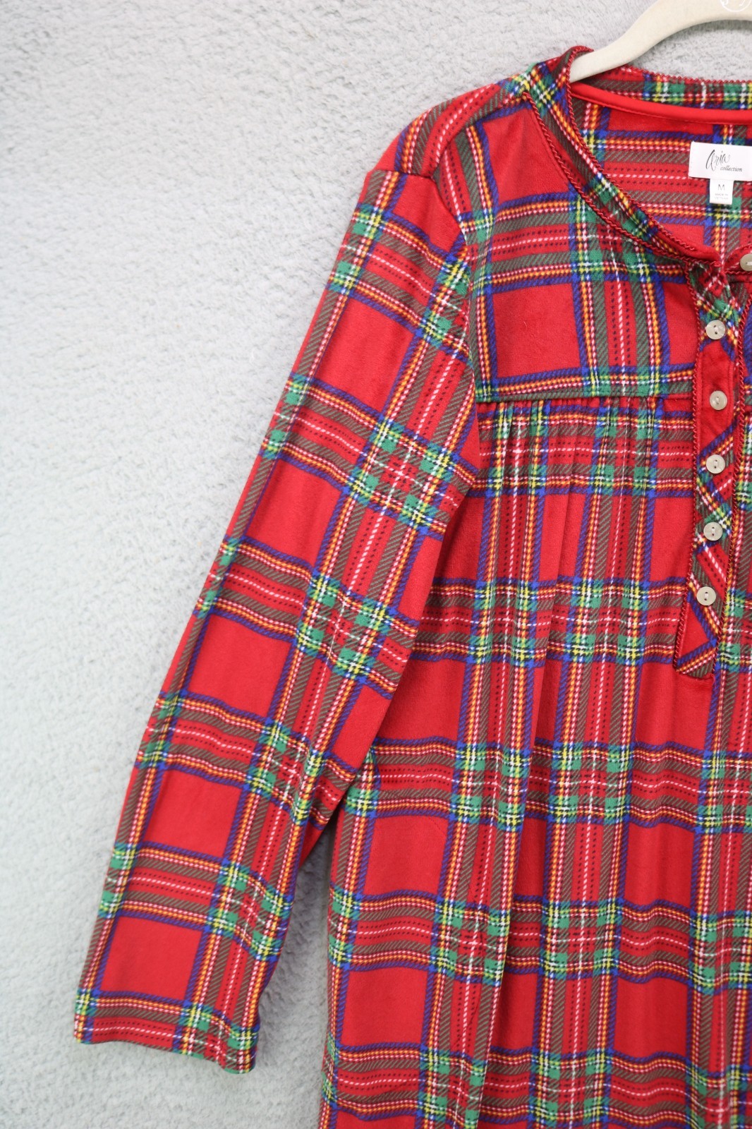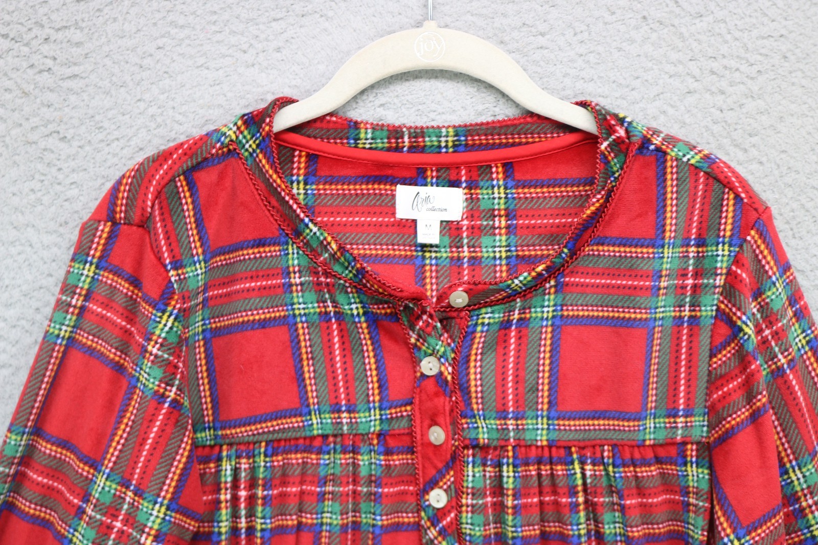 как выглядит Aria Midi Velour Long Sleeve Plaid Nightgown-Size Medium-Winter-Cozy Chic фото