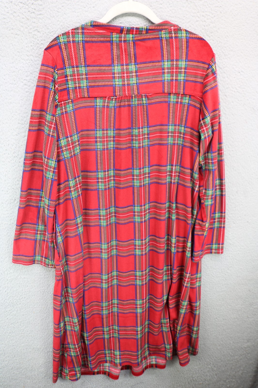 Aria Midi Velour Long Sleeve Plaid Nightgown-Size Medium-Winter-Cozy Chic