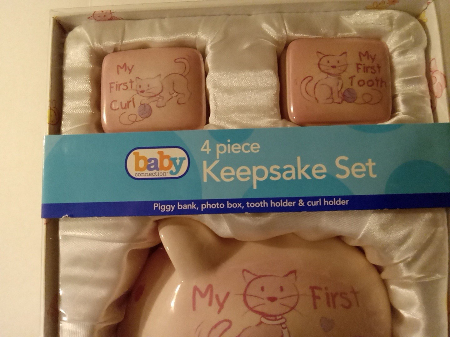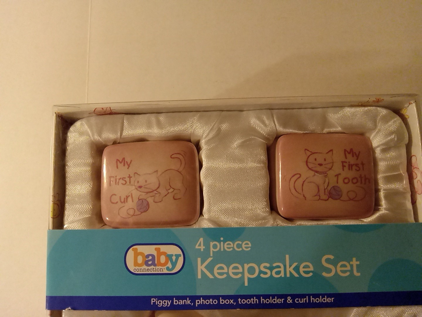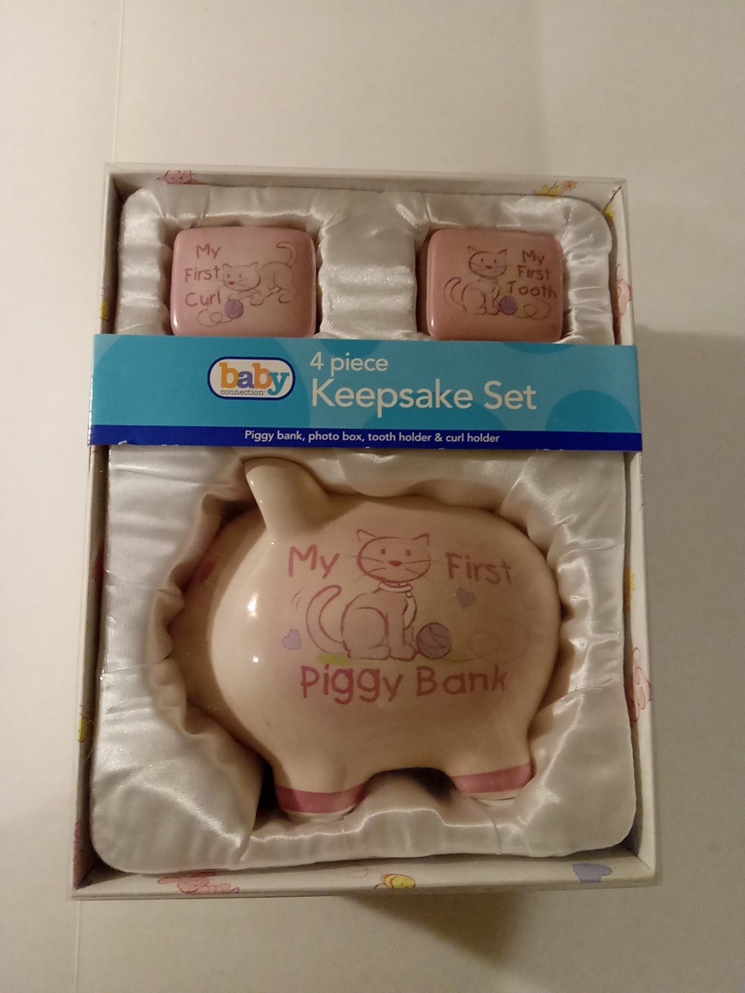 Baby Connection Girls4 Piece Keepsake Set Piggy Bank Tooth Holder Curl Holder...