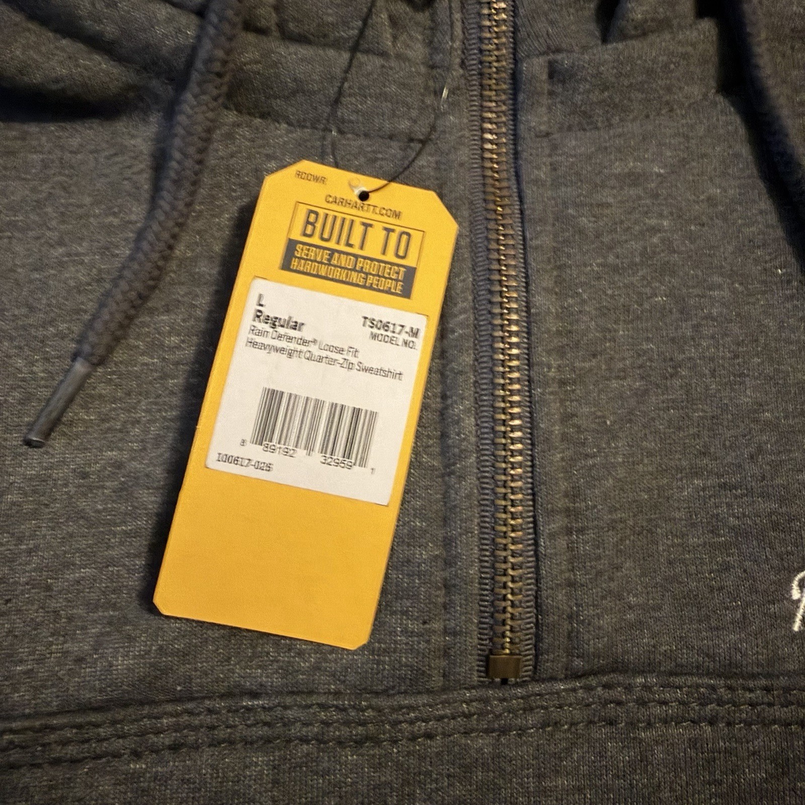 Carhartt Rain Defender 1/4 Zip Hoodie Mens Large Grey Loose Fit NWT Company Logo
