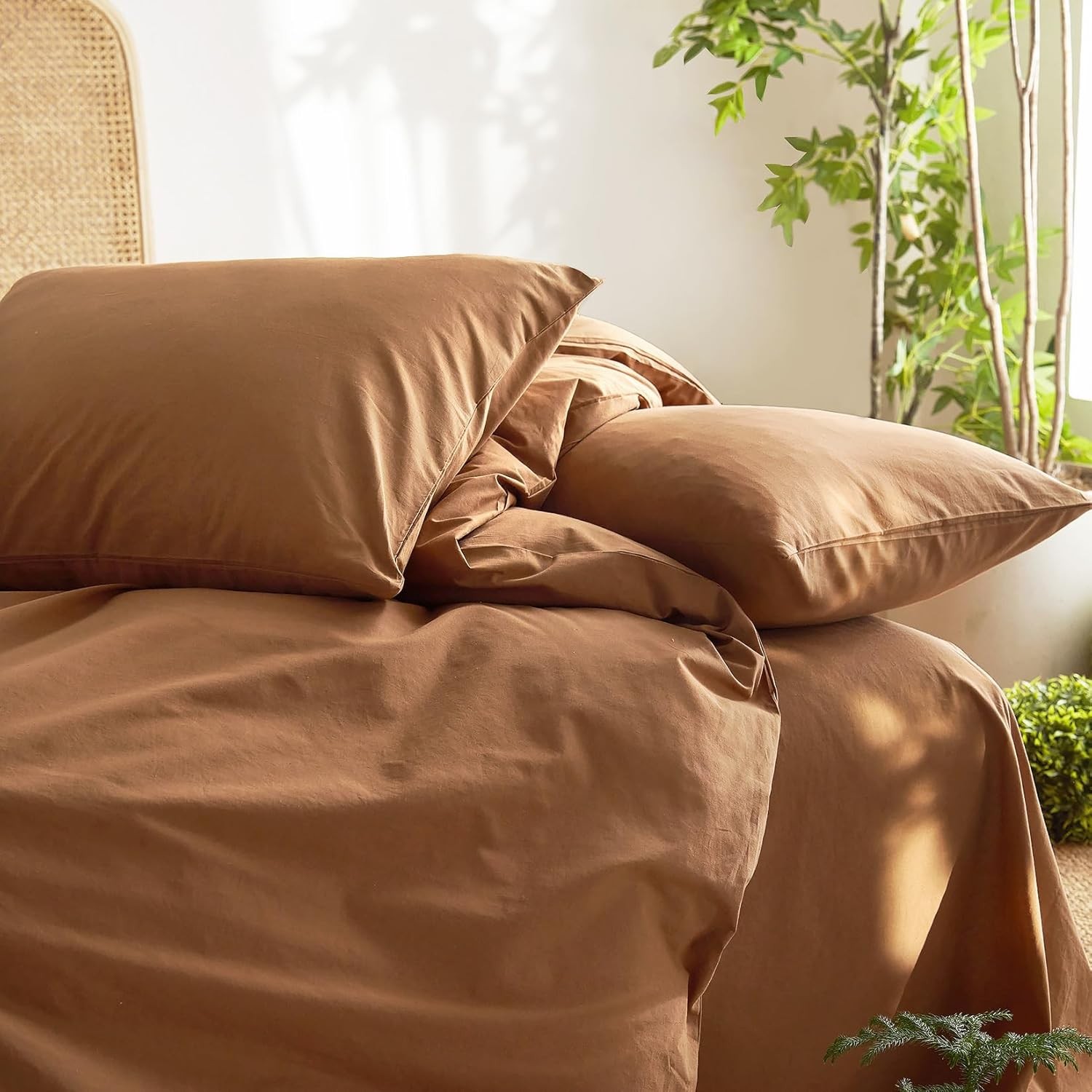 Cotton Duvet Cover Set King Size Caramel Terracotta 100 Washed Cotton Linen