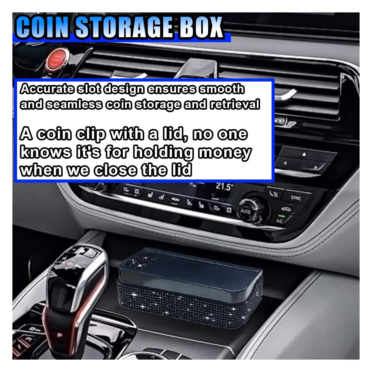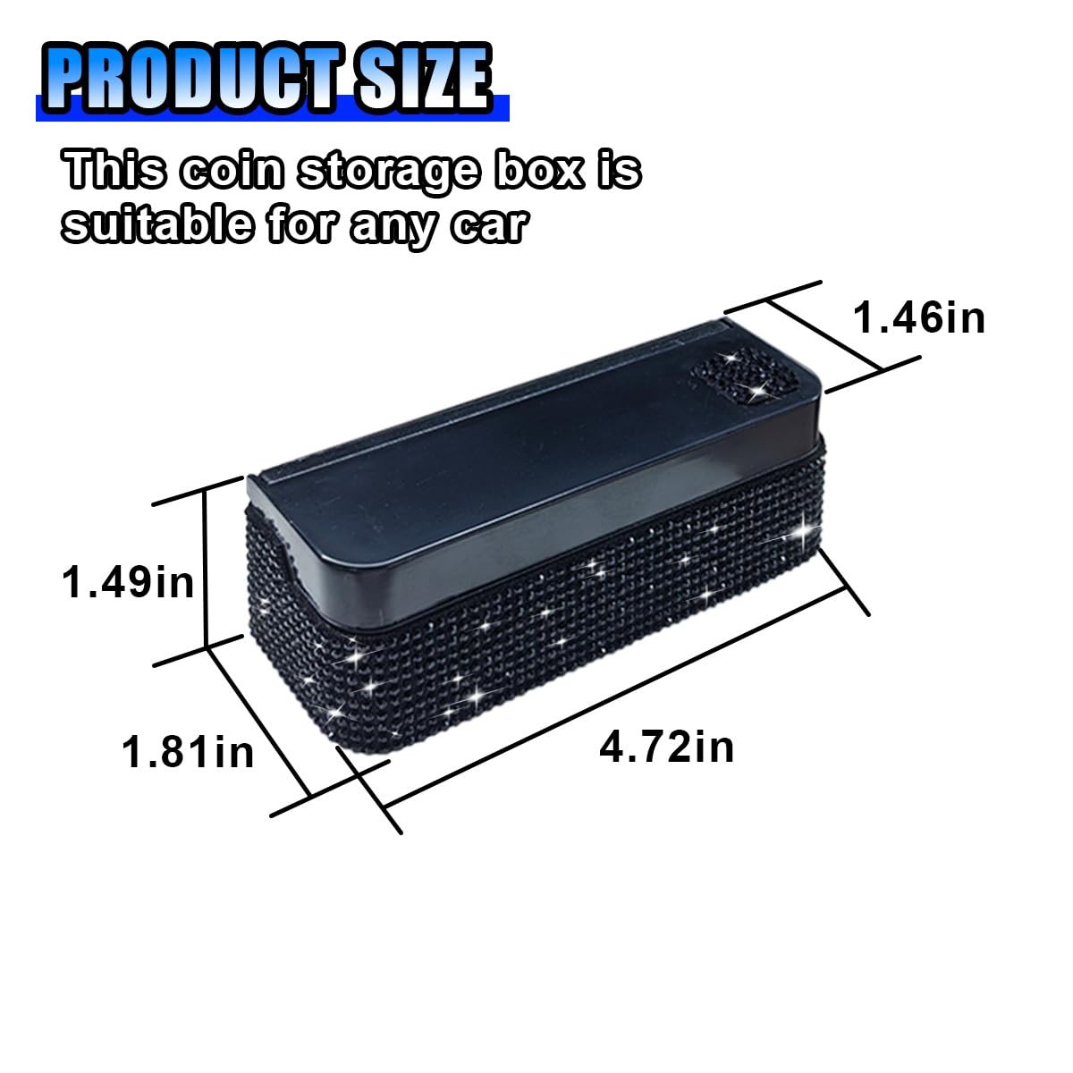 LAINLOY Bling Coin Holder for Car, Crystal Rhinestone Storage Box Black