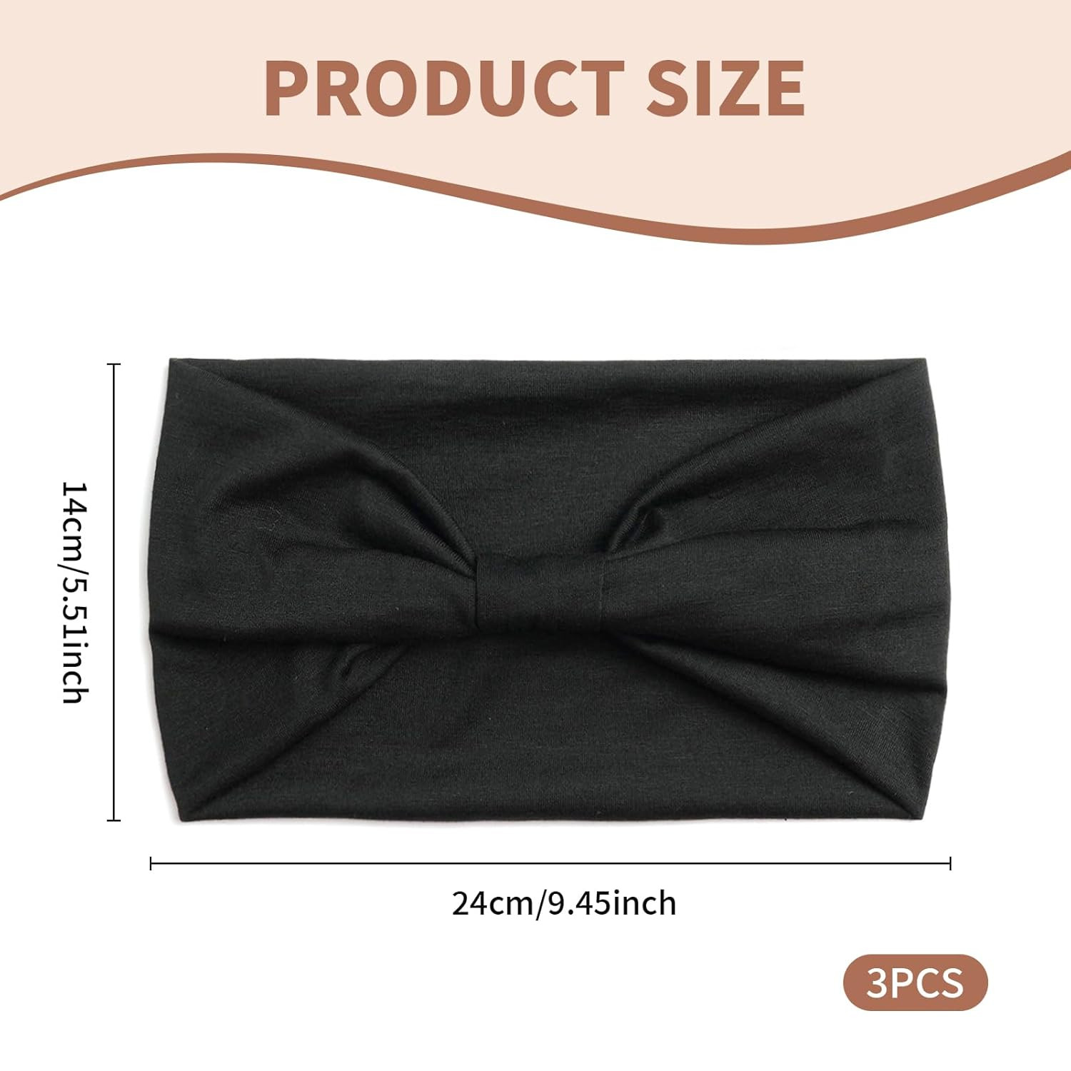 3 Pack Wide Headbands for Women, Black Extra Wide Large Twist Knotted Stretchy N