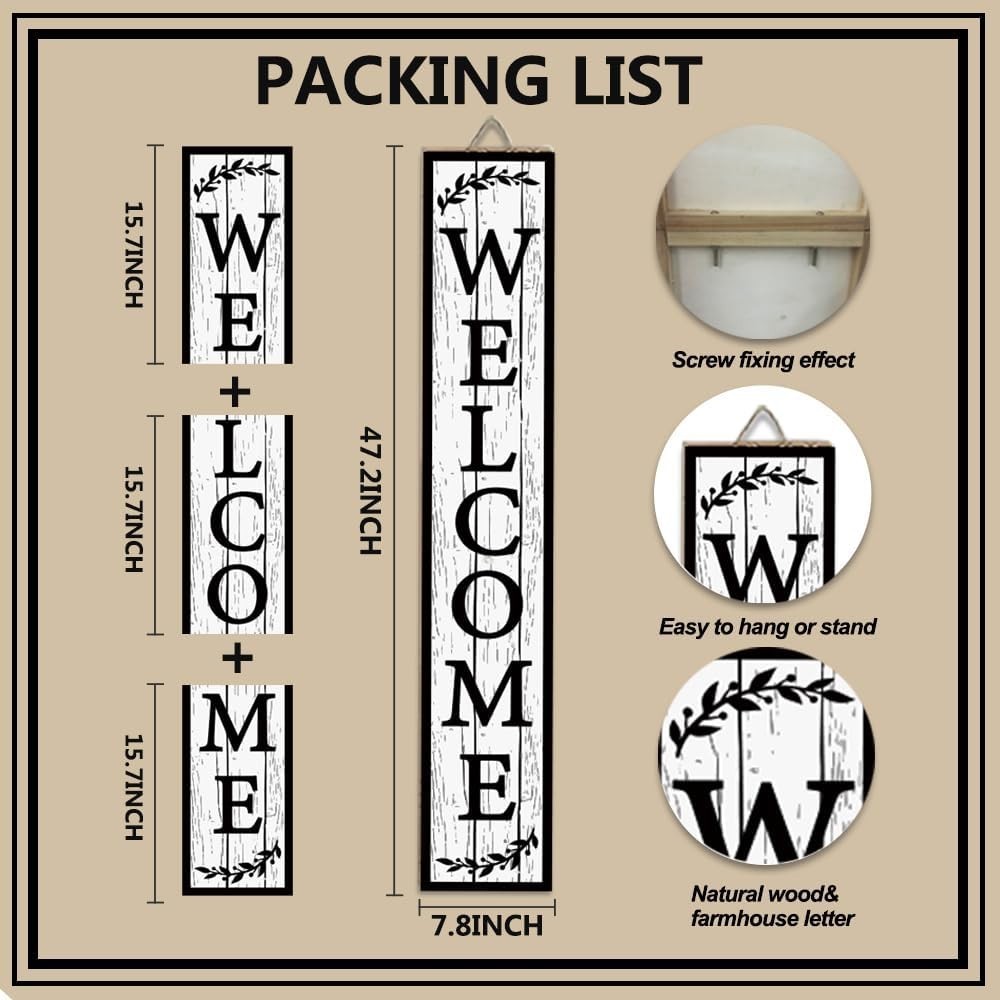 Welcome Sign for Front Door, 47 x 7.9 Standing Large Wooden Welcome Porch D...