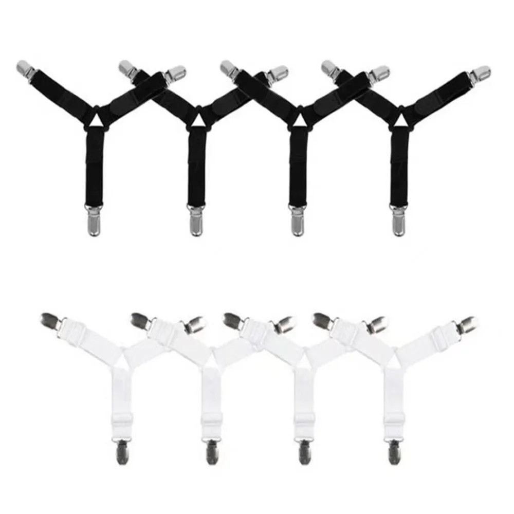 4Bed Sheet Fasteners Adjustable Elastic Suspenders Straps Mattress Covers Clips