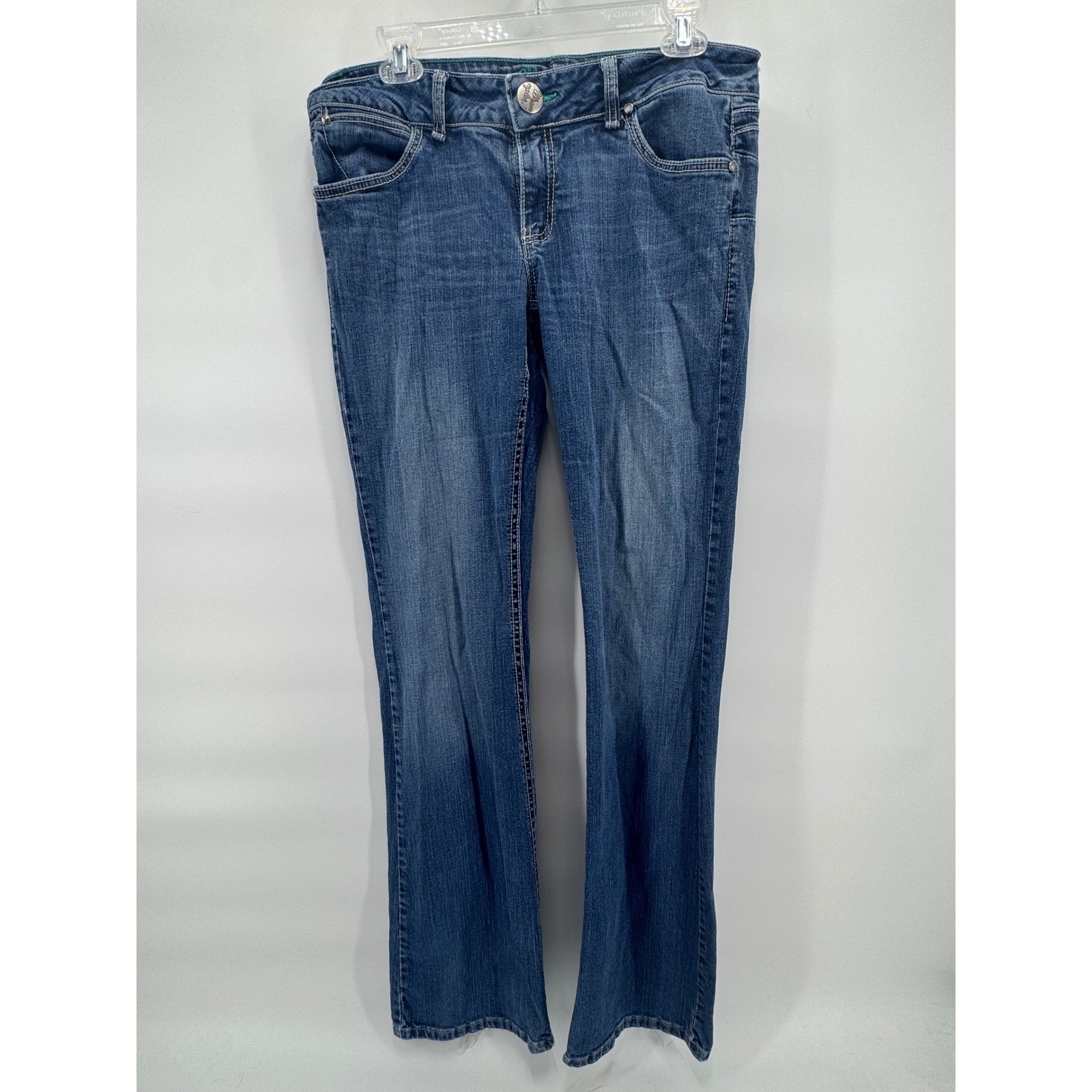 Wrangler Women's Blue Denim Jeans Embellished Pocket Bootcut Size 9 10 x 36