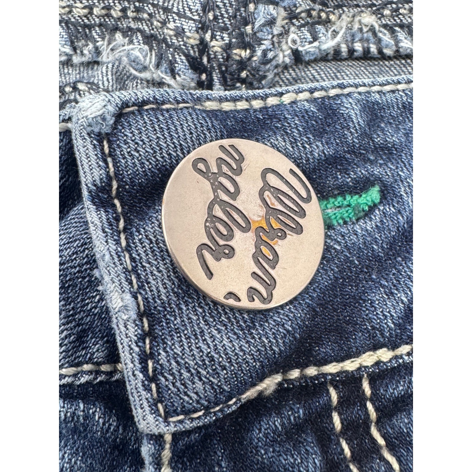 как выглядит Wrangler Womens Blue Denim Jeans Embellished Pocket Bootcut Size 9 10 x 36 фото