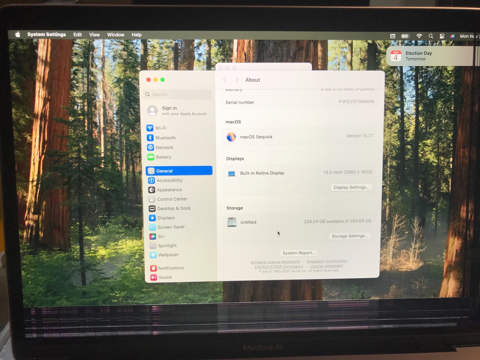 Apple MacBook Air 13 i3 1.1Ghz 8GB 256GB Gold 2020 A2179 Bad Screen 249