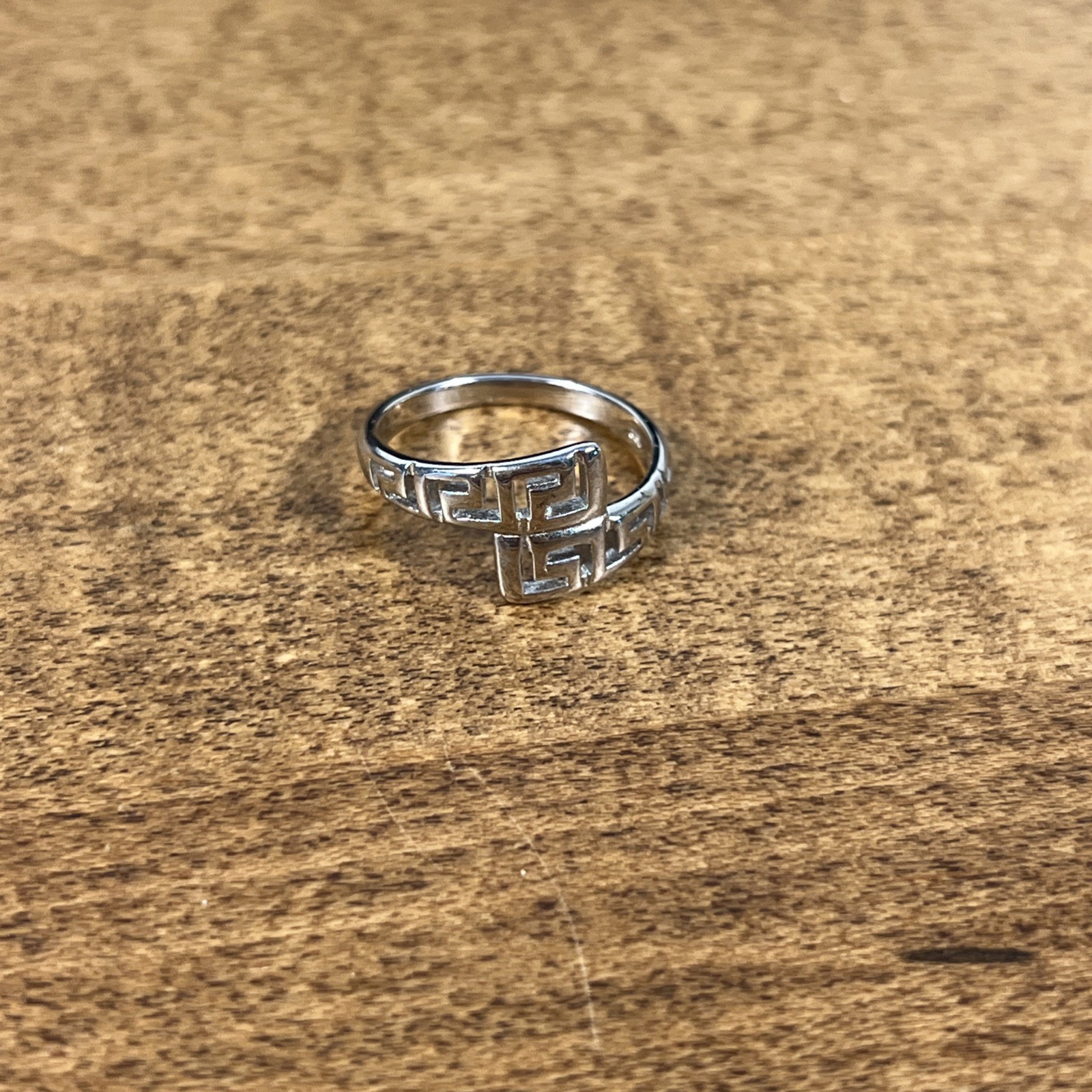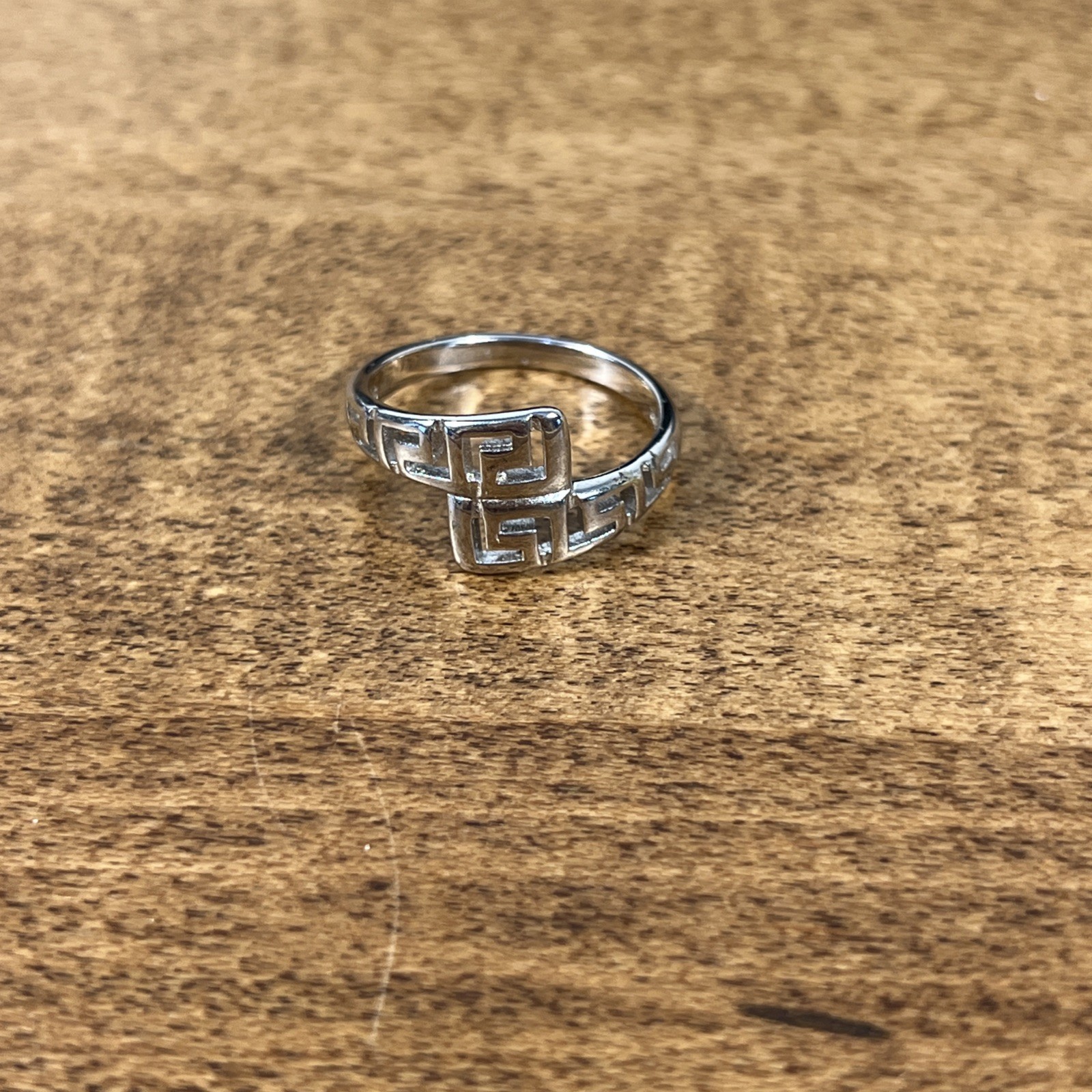 Sterling Silver 925 Greek Key Bypass Ring Size 7.25