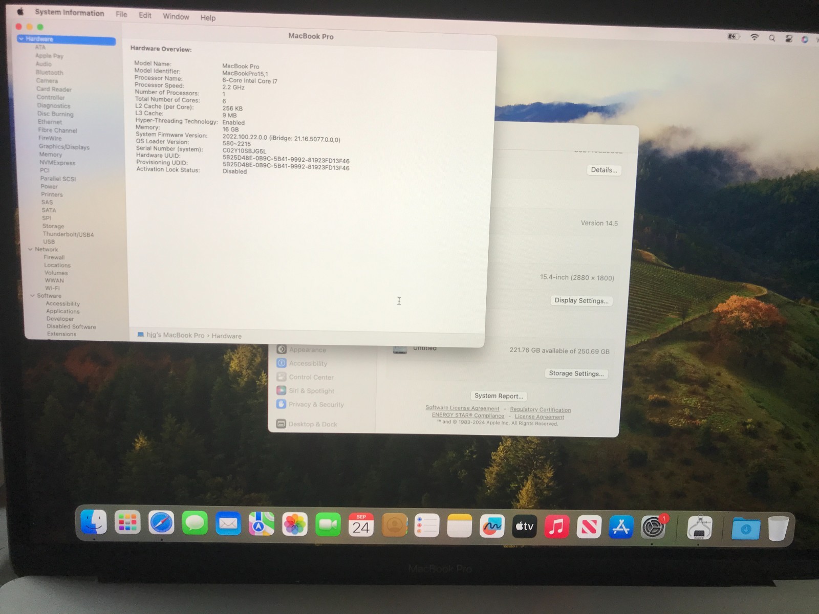 Apple MacBook Pro A1990 15.4 2018 i7 2.2GHz 16GB 256GB Silver Keep Restart 296
