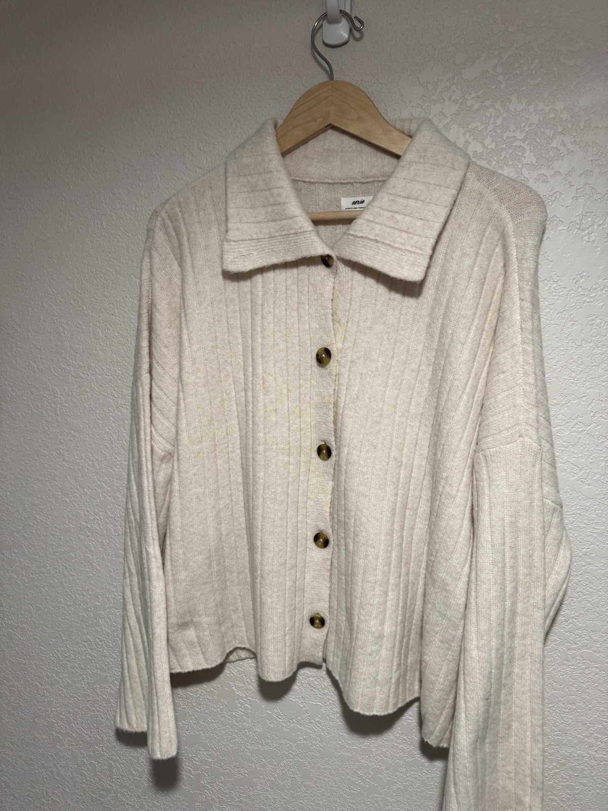 NWT Aerie unReal Cream Ribbed Knit Cardigan Xl
