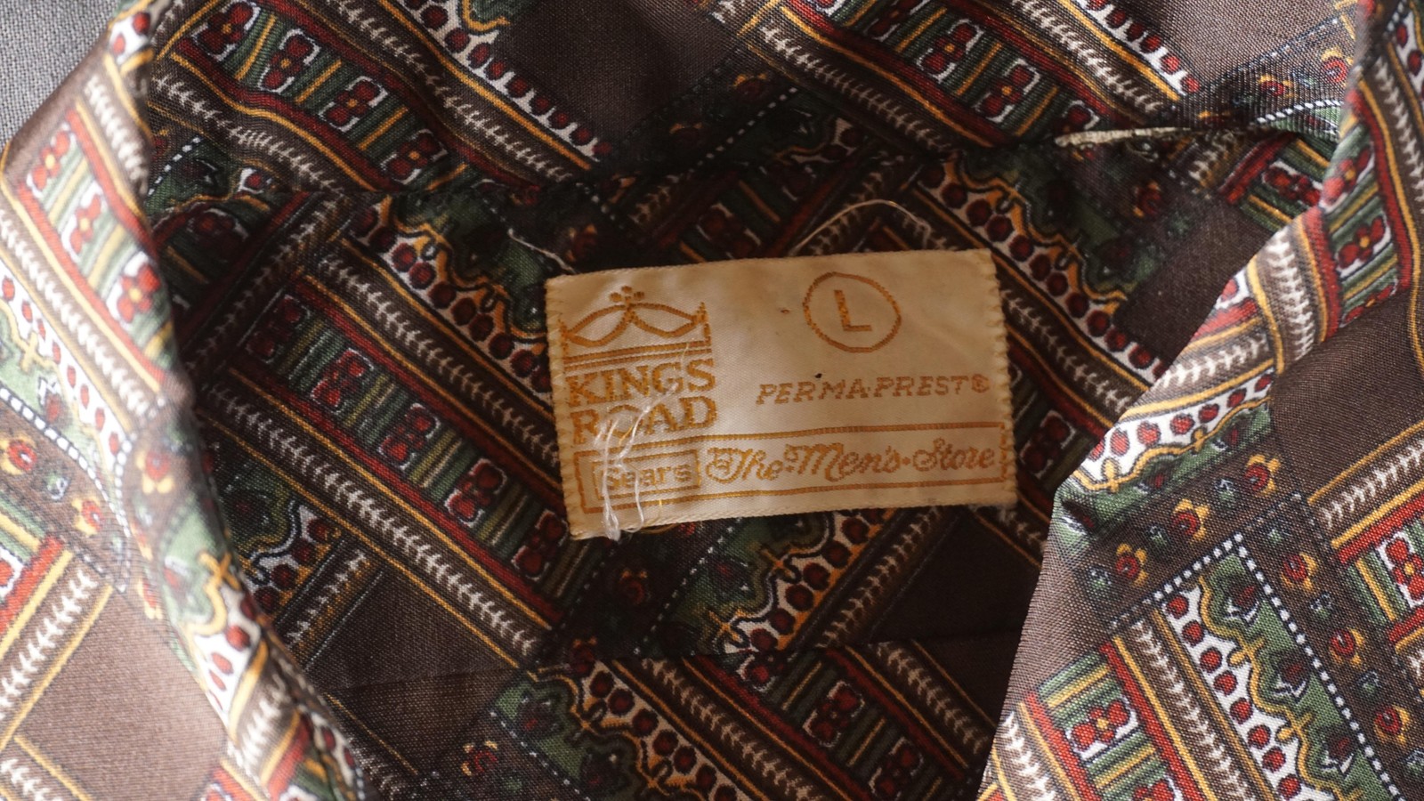 как выглядит Vintage Kings Road Shirt Mens Large Brown Geometric Perma-Prest Short Sleeve 70s фото