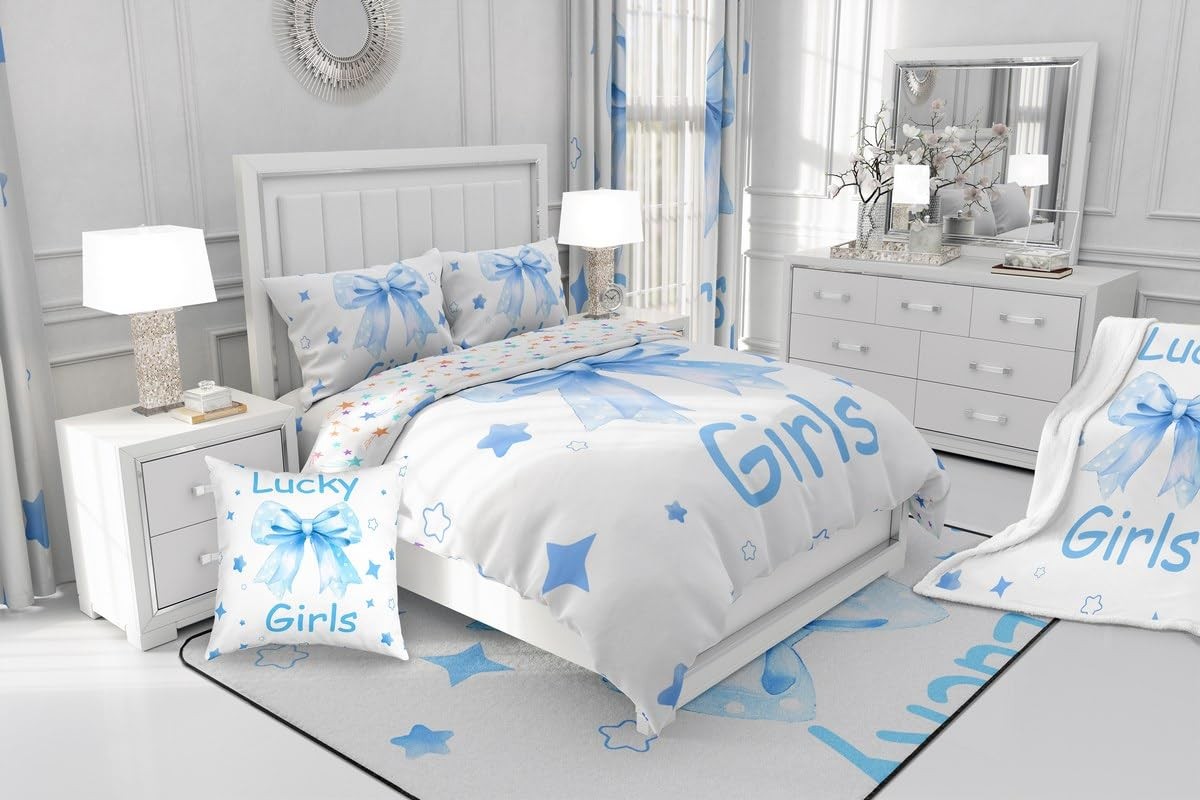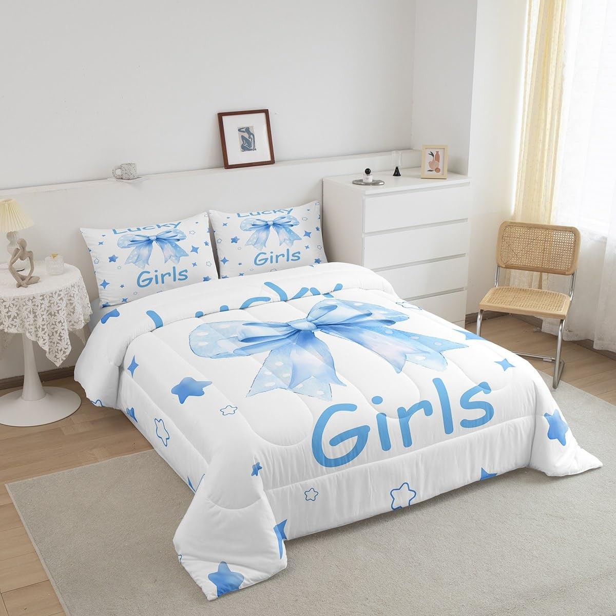 Girls Bowknot Comforter Set,Fashion Girls Bow Bedding Set Twin Size,Girls Bed...