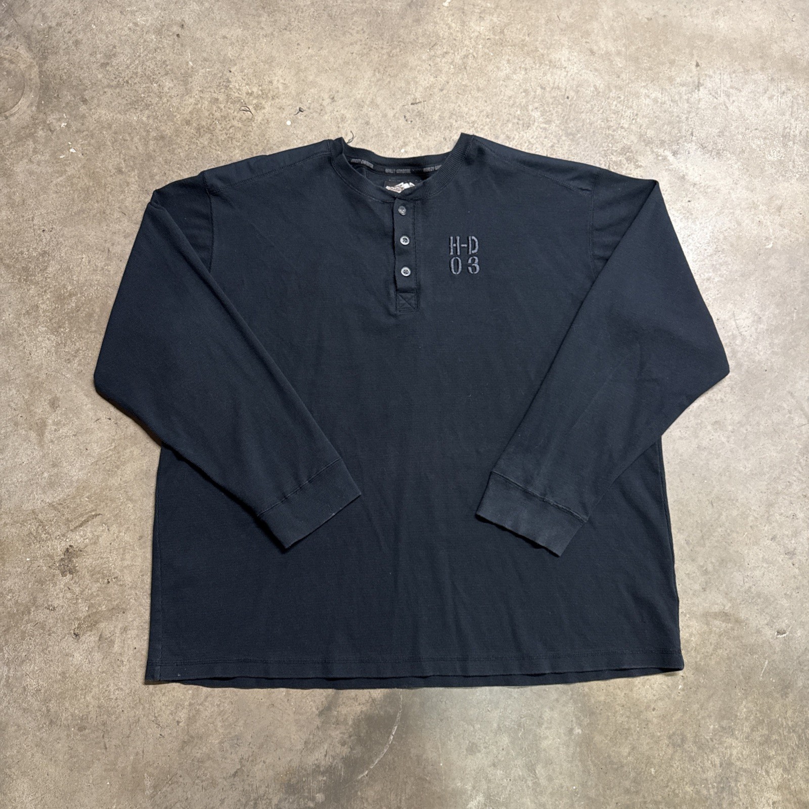 Vintage Harley Davidson Sweatshirt Mens 2XL Black Y2K Waffle Thermal Baggy Biker