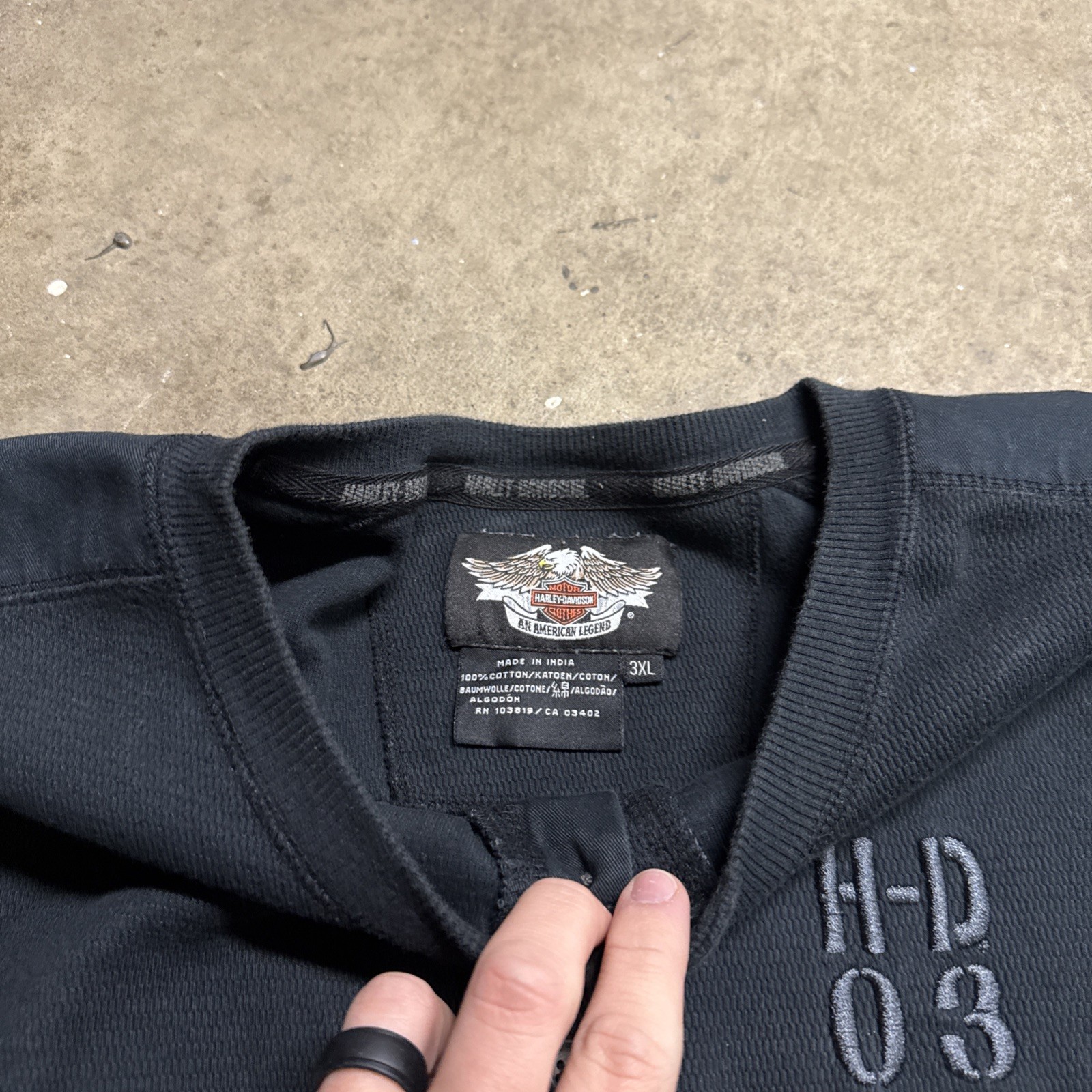 как выглядит Vintage Harley Davidson Sweatshirt Mens 2XL Black Y2K Waffle Thermal Baggy Biker фото