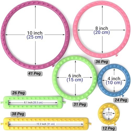 Knitting Loom Kit with Pompom Maker - Round Rectangular Looms for Hats, Scarve