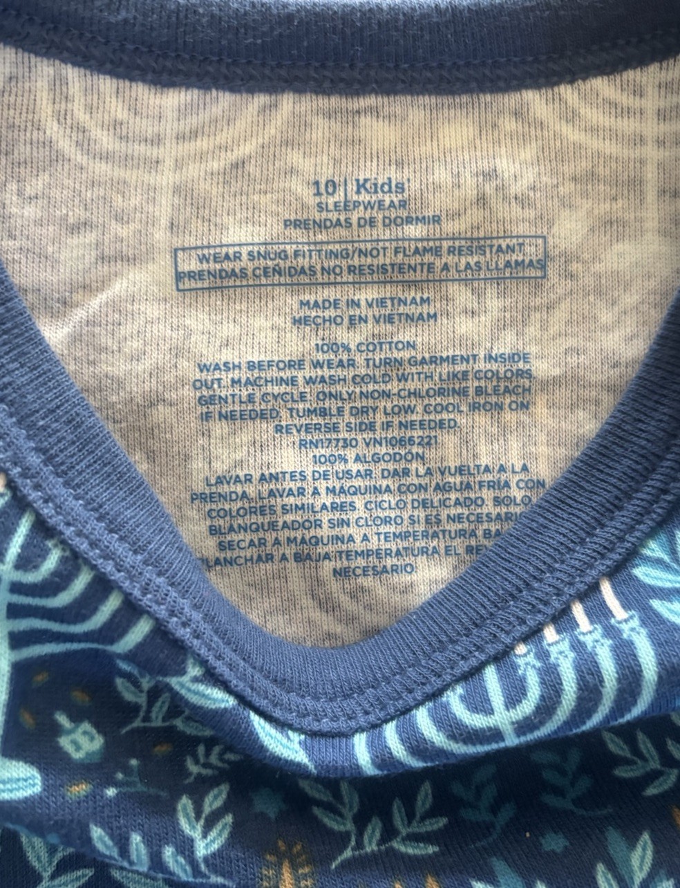 New Unisex Size 10 Hanukkah Pajamas Set - Navy Blue Cotton