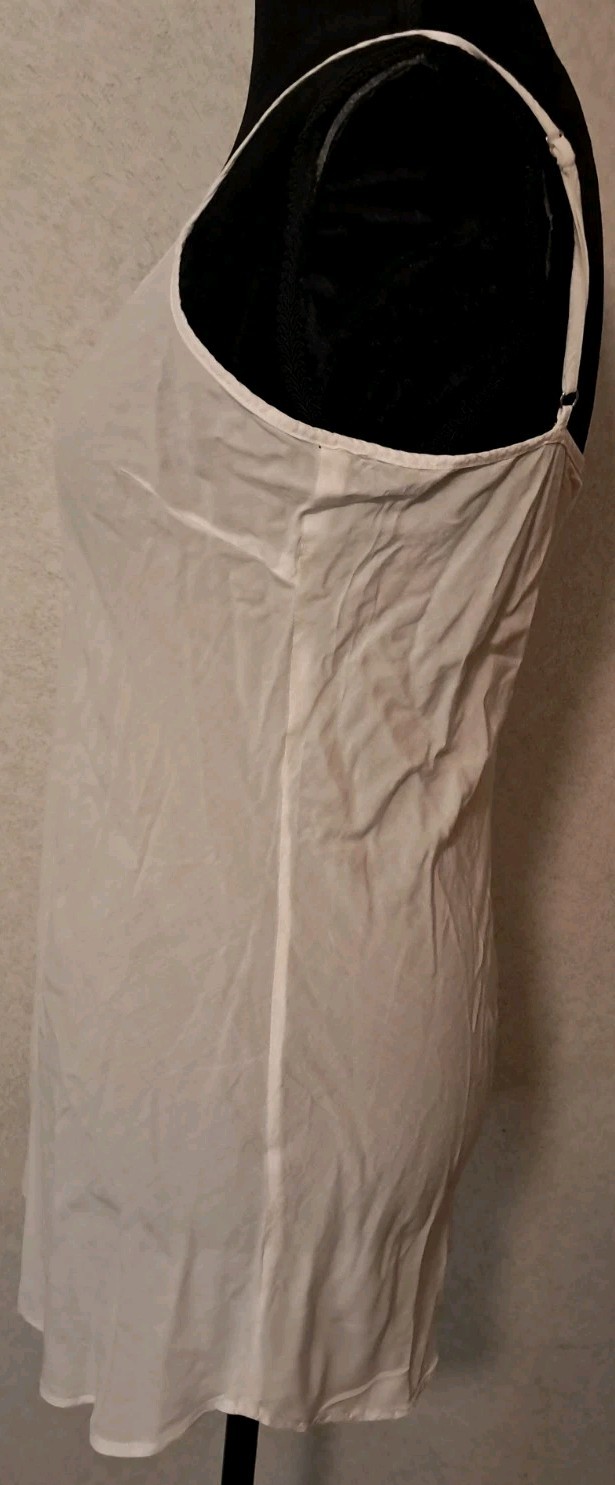 как выглядит FREE PEOPLE Sz M White Mini Slip Dress Semi Sheer Ruffled Hem Adjustable Straps фото
