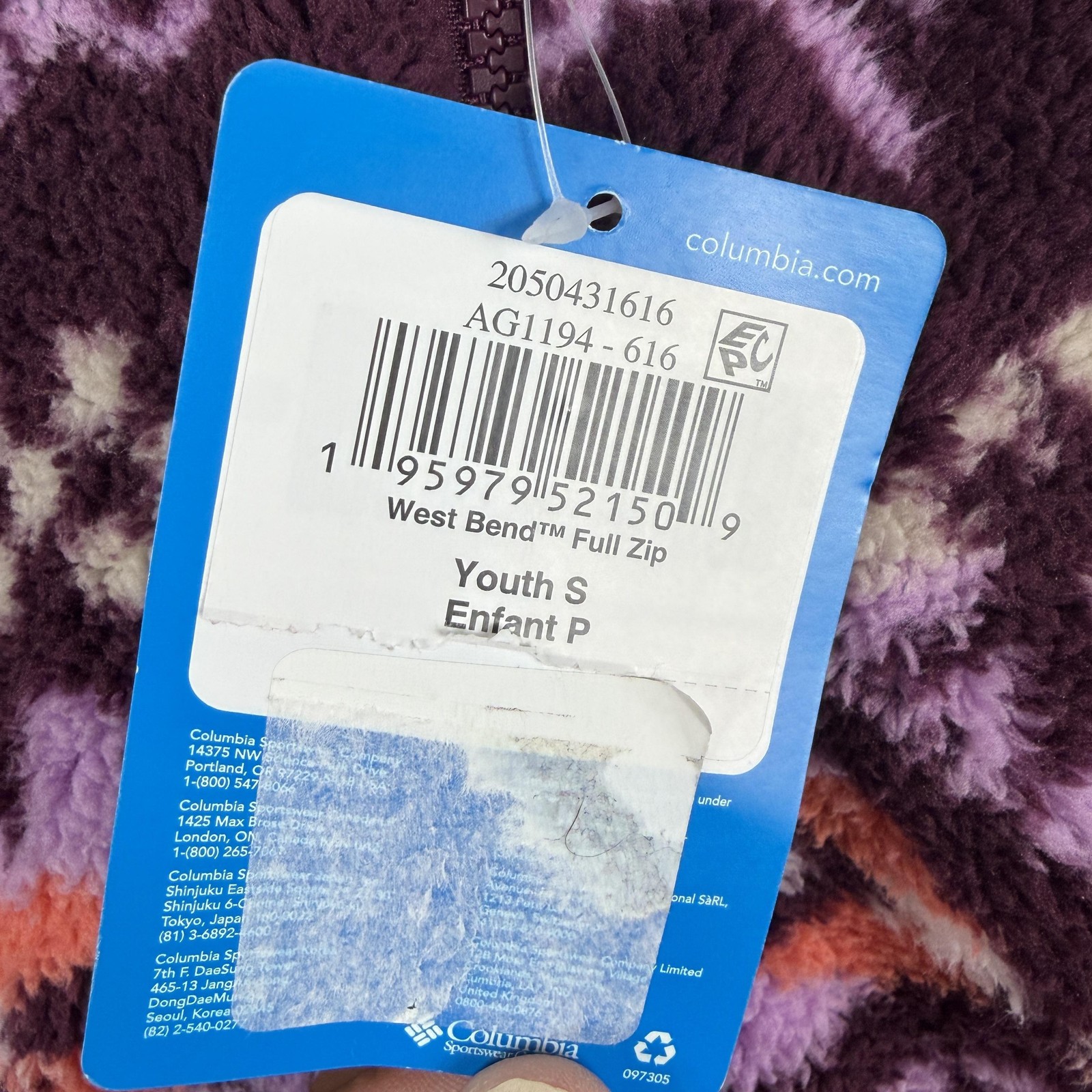 как выглядит Columbia Jacket Youth Small 7-8 Purple West Bend Full Zip Fleece Aztec Geometric фото