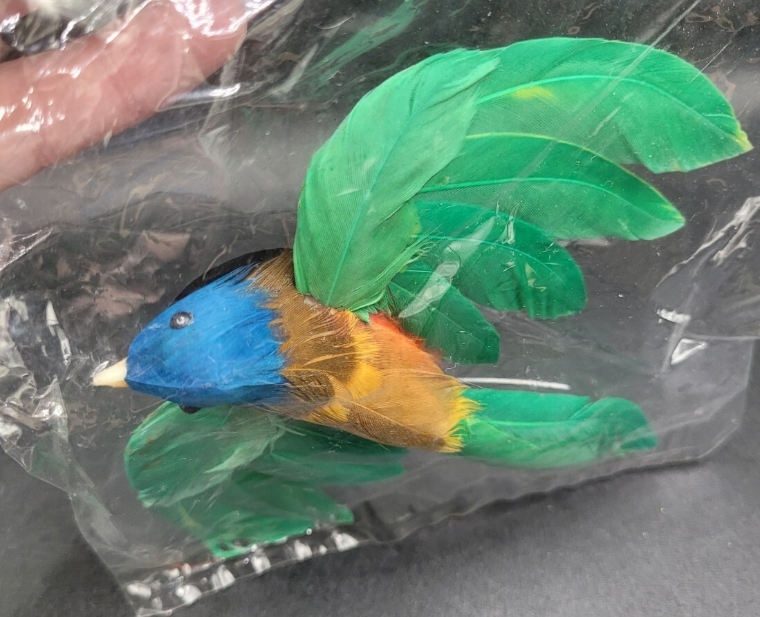 • Faux Bird Forever Beautiful Real Feathers Green Blue Wire Flight NIP Craft Hobby