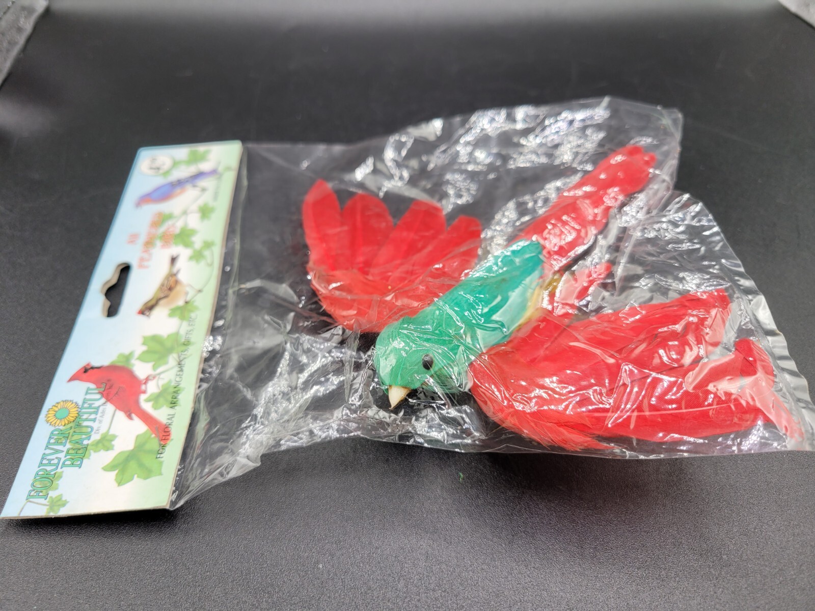 • Faux Bird Real Feathers Red Green Decor Wire Flight NIP Flower Decor Craft Hobby