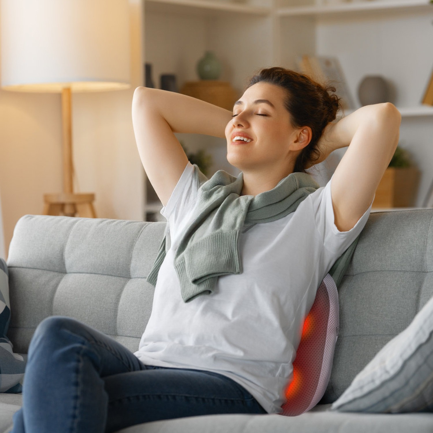 Rechargeable Back Neck Massager Pillow w/Heat for Home Car Chairs