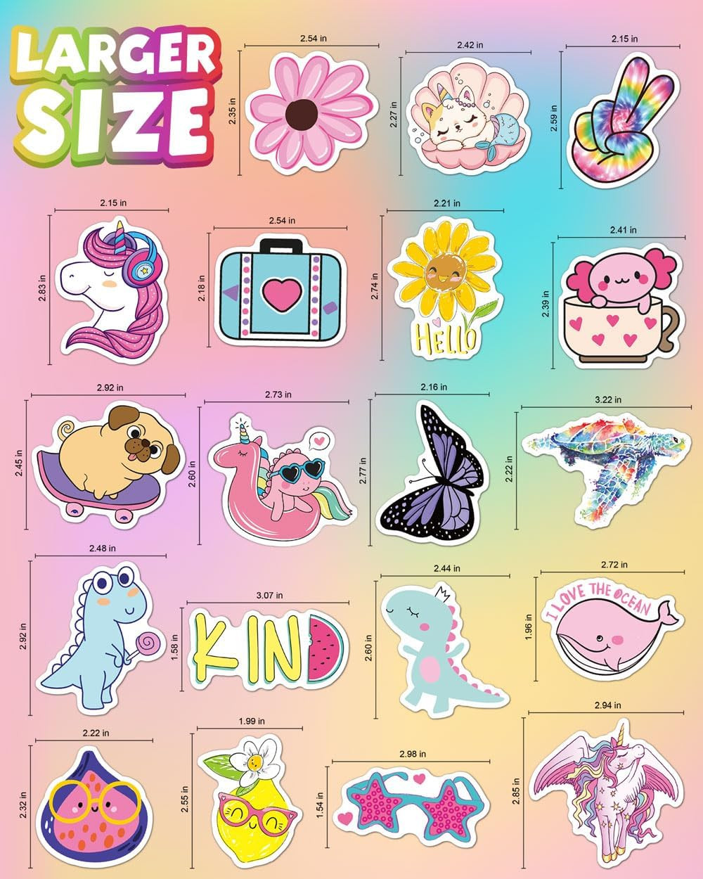как выглядит Water Bottle Stickers for Kids, 100 PCS Waterproof Cute Fun Vinyl Stickers Pa... фото
