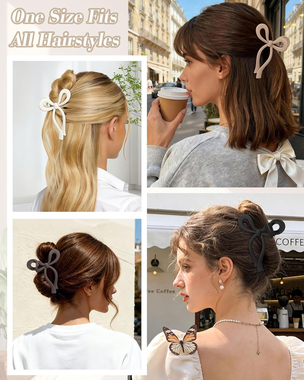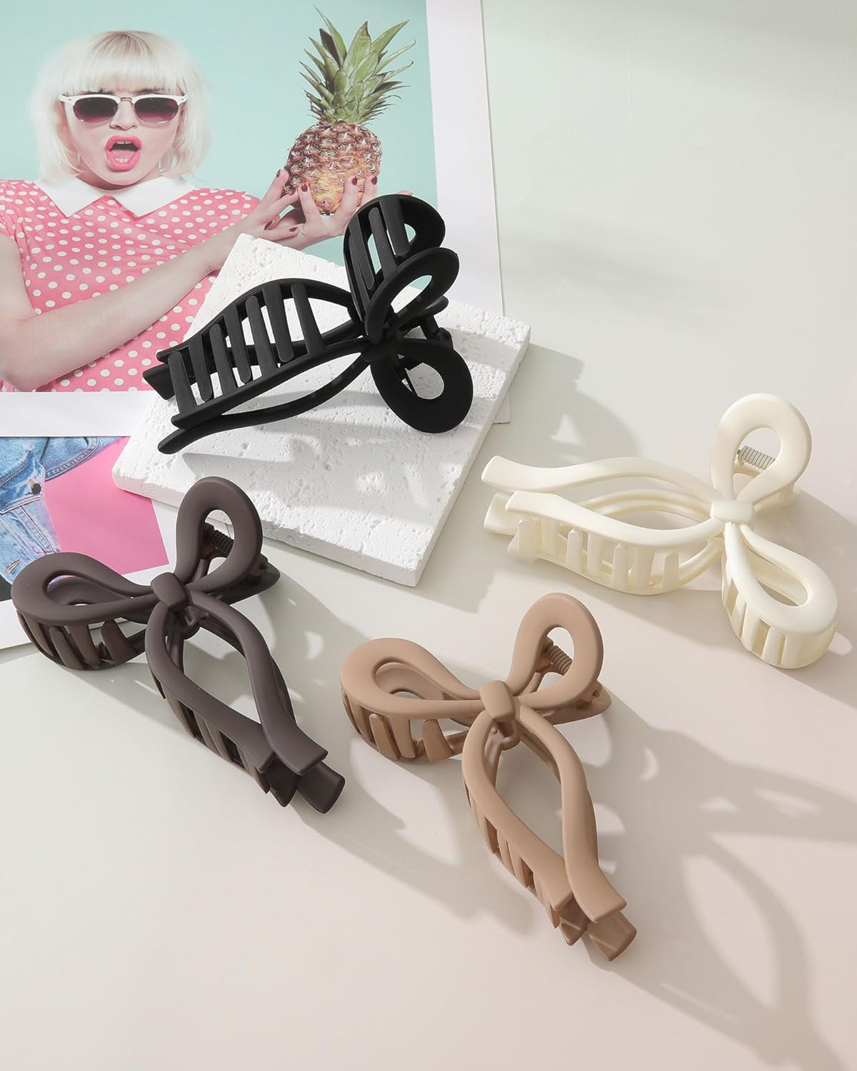 4 Pack Bow Hair Claw Clips for Women, 4.3 Large Non-Slip Cute Hair Styling Acce