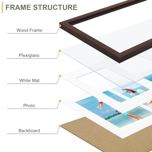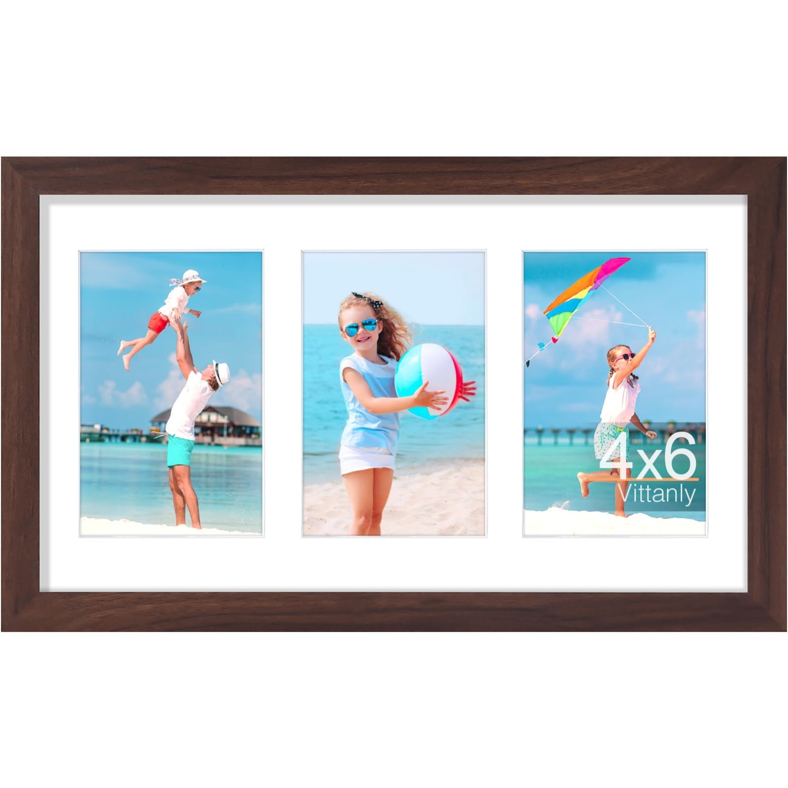 8x14 Collage Picture Frame for 3x 4x6 Photos, Horizontal/Vertical Display, Brown