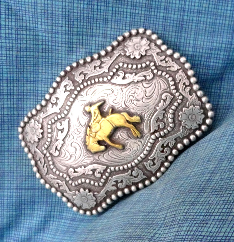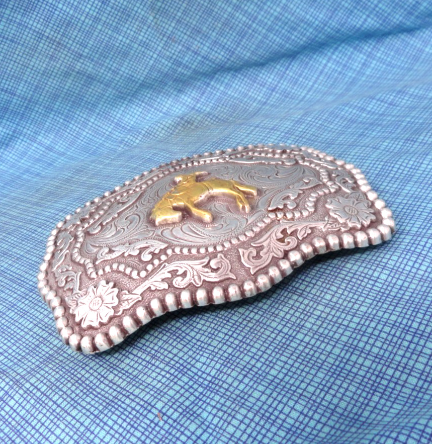 Rodeo Cowboy Bronc Rider Belt Buckle Larger Ornate Western Floral Scroll .GMP883
