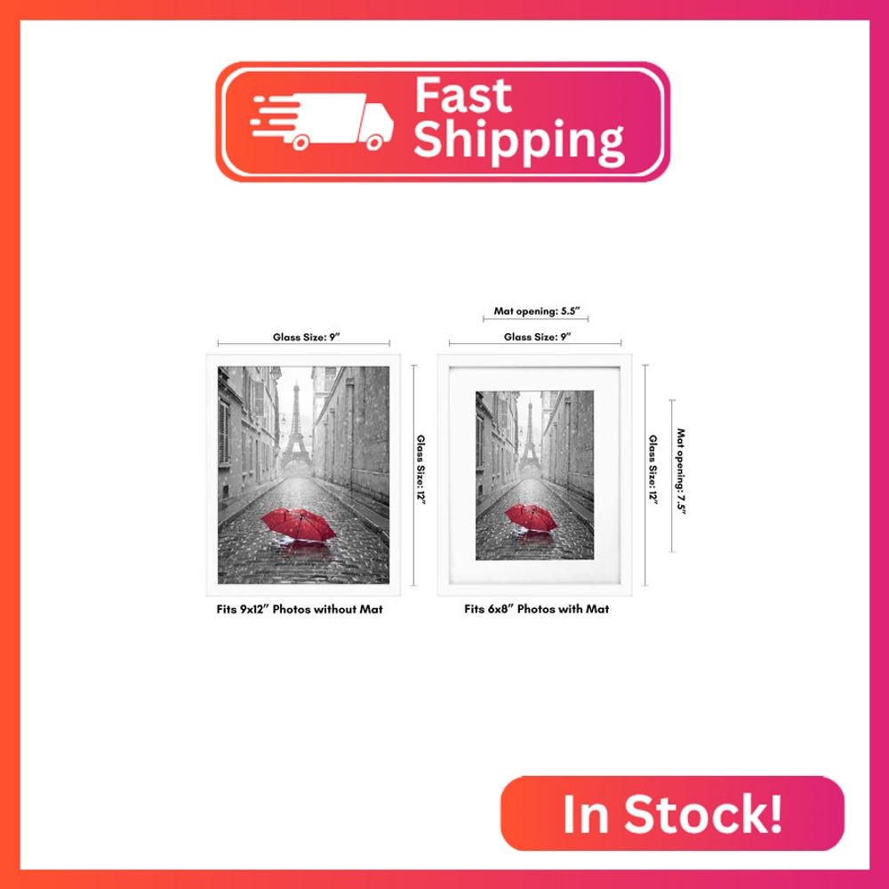Americanflat 9x12 Picture Frame with Shatter-Resistant Glass - Use as 6x8 Frame