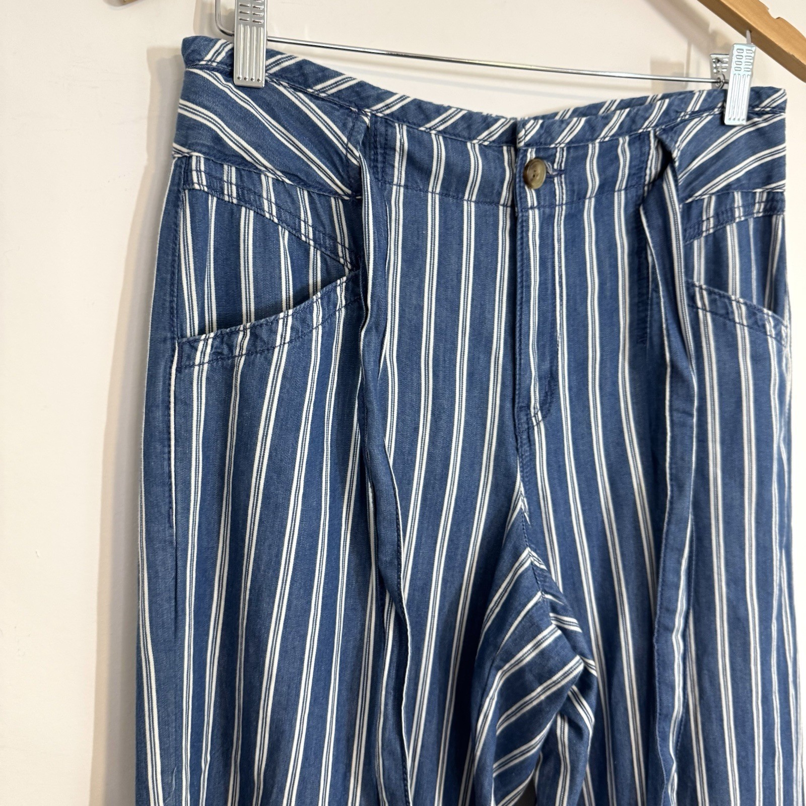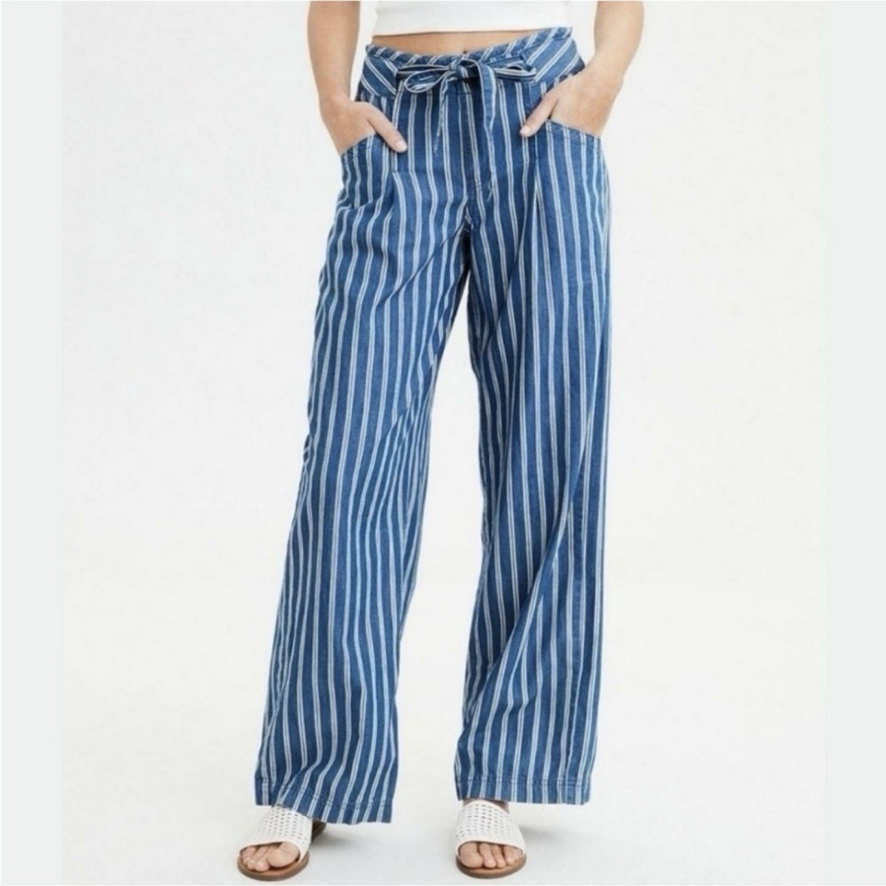 как выглядит American Eagle Blue Striped Hi Rise Wide Leg Boho Belted Palazzo Pants Size 6 фото