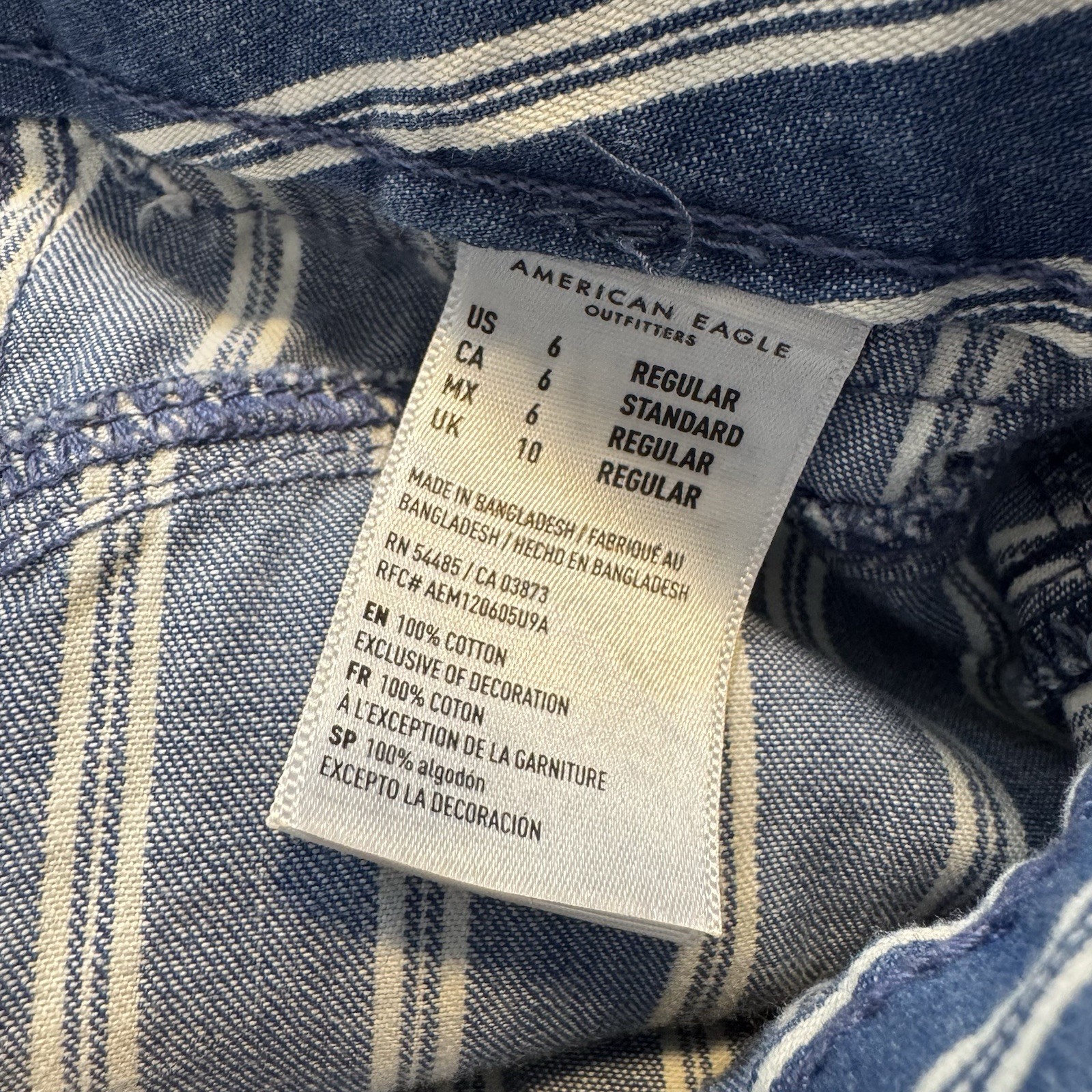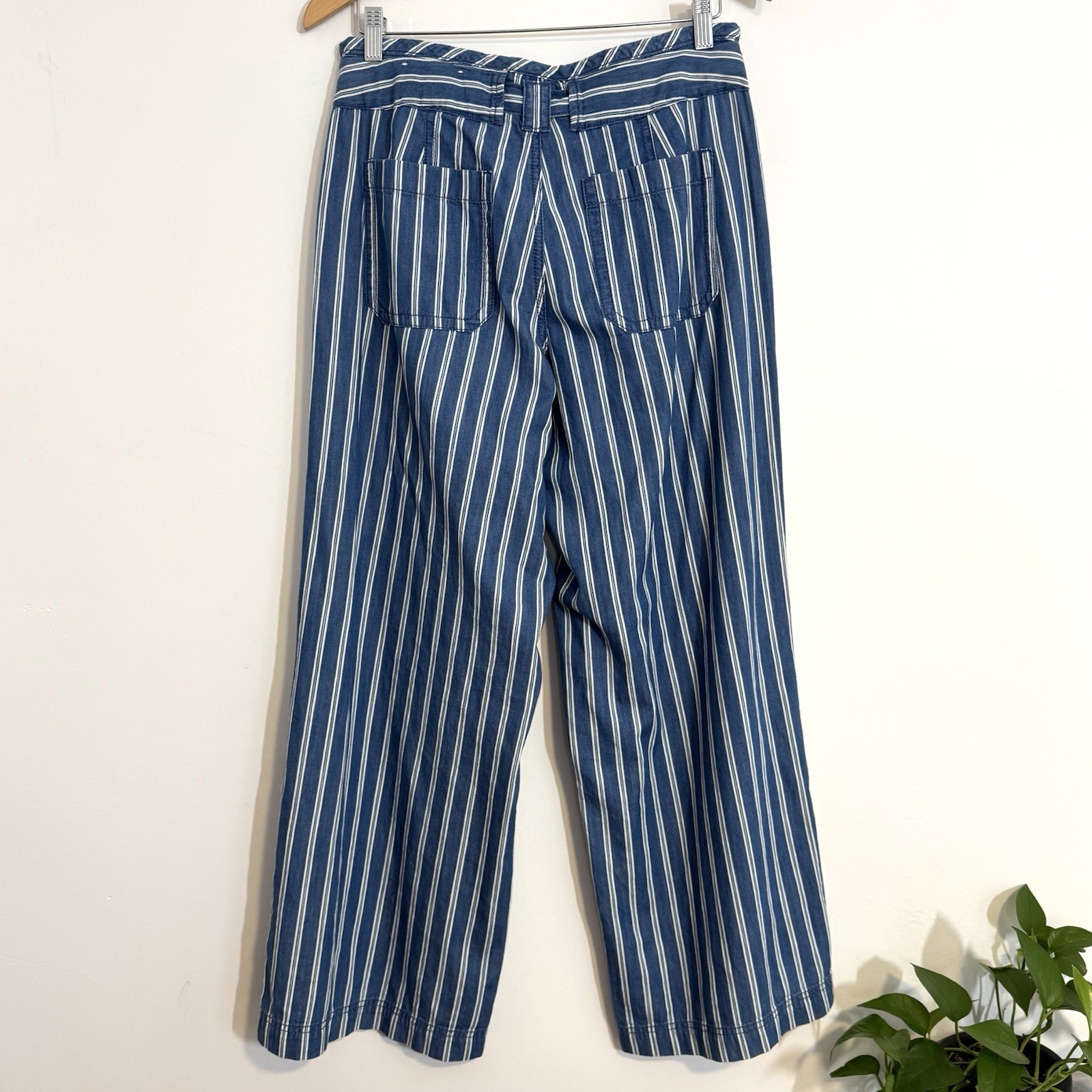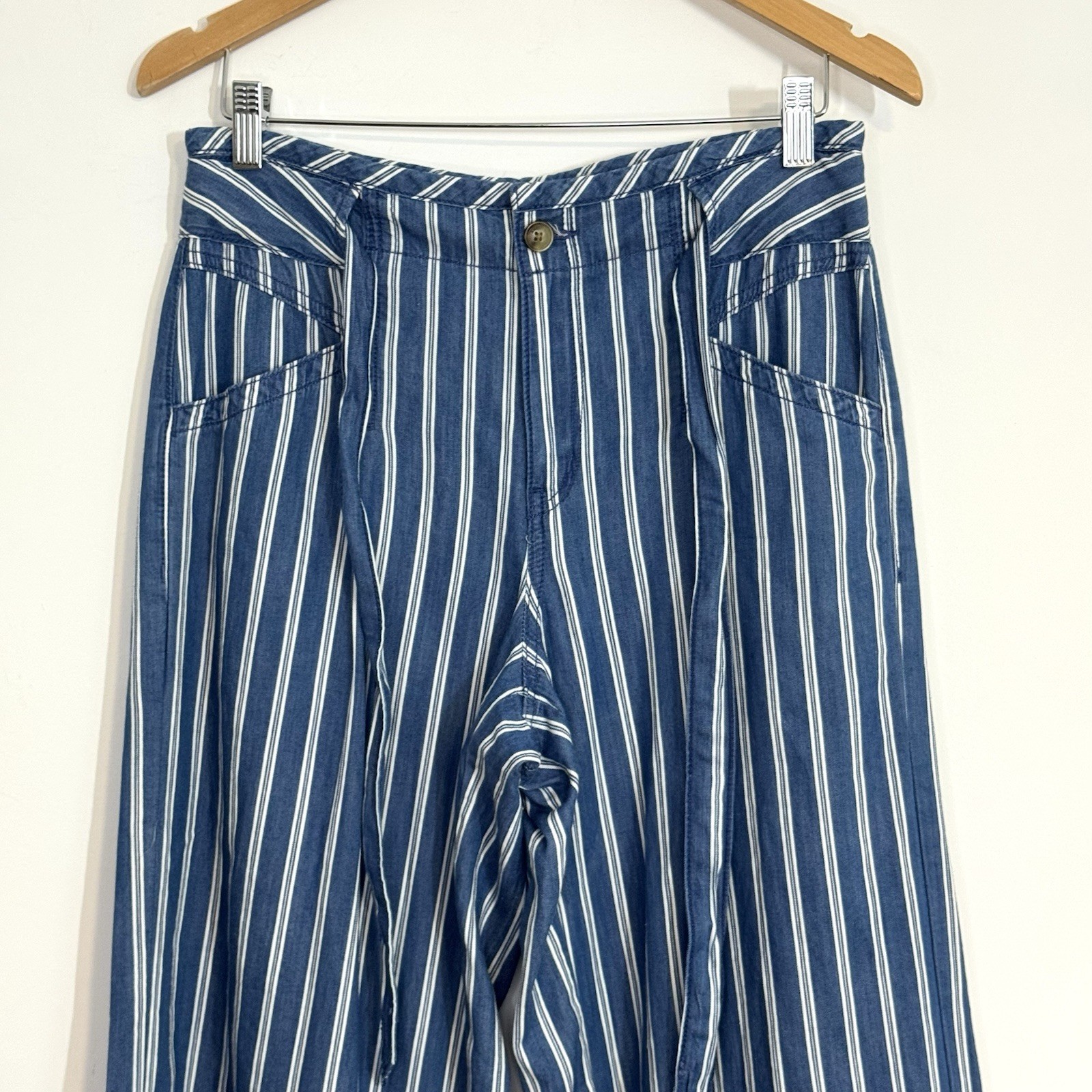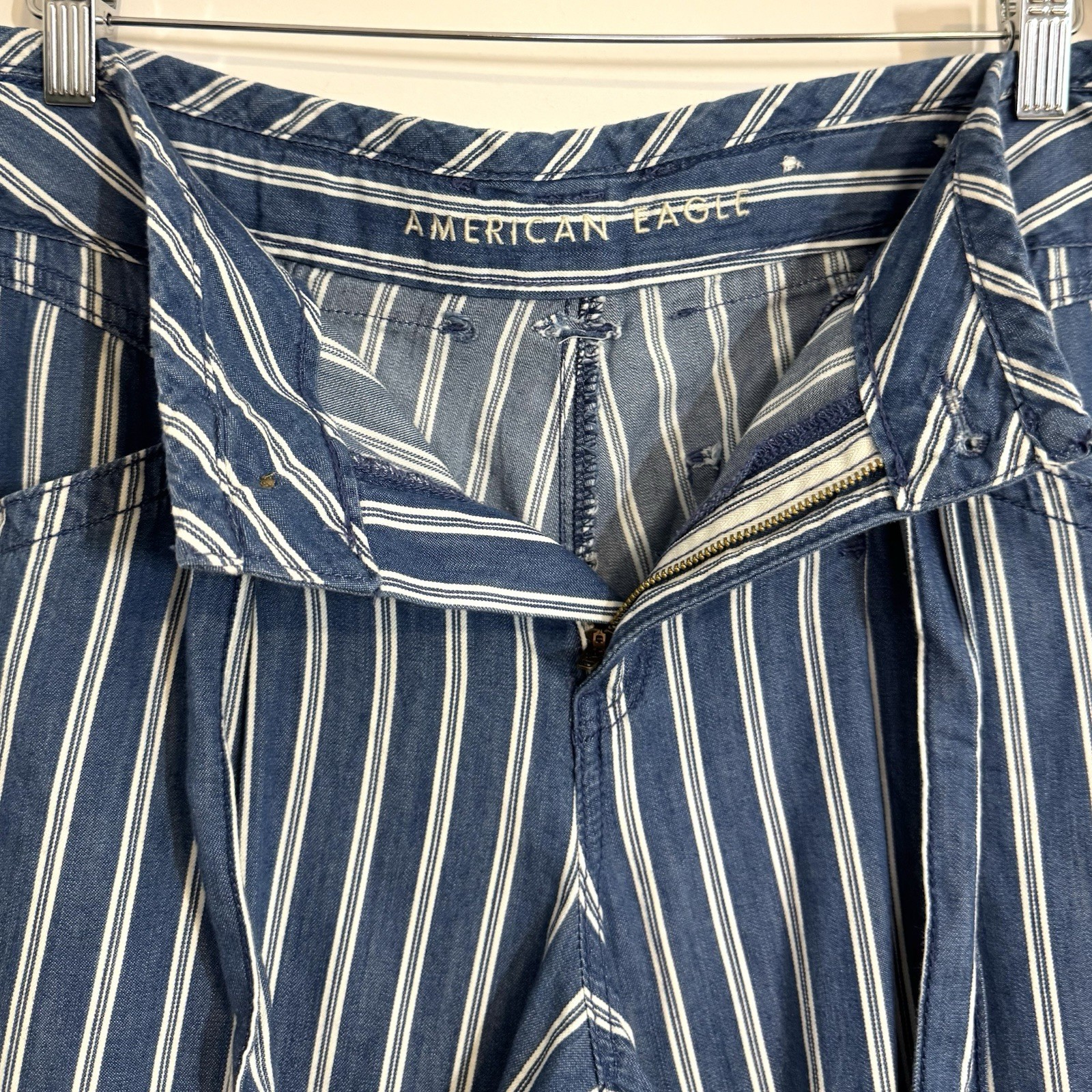 American Eagle Blue Striped Hi Rise Wide Leg Boho Belted Palazzo Pants Size 6