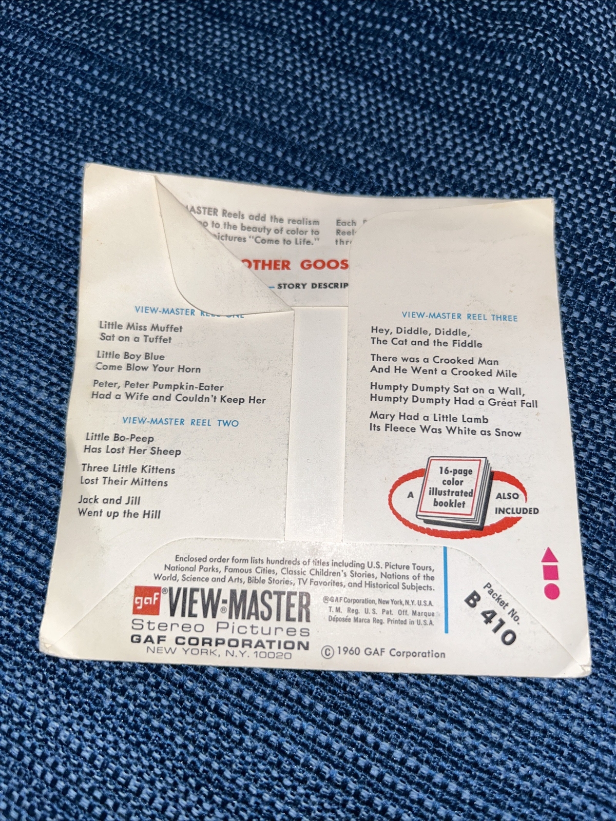 View-Master Mother Goose Rhymes 3 reel packet booklet B410