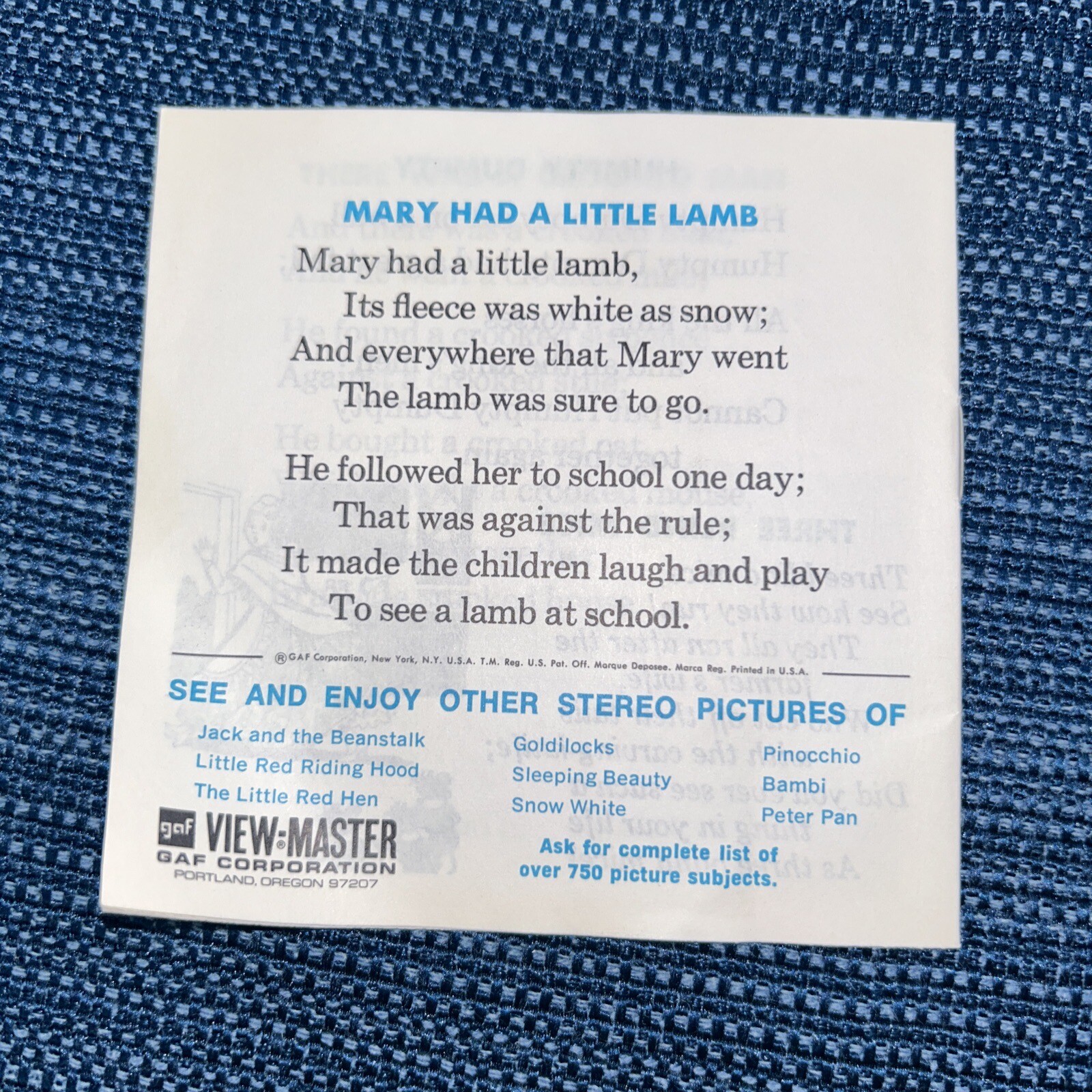 • View-Master Mother Goose Rhymes 3 reel packet booklet B410
